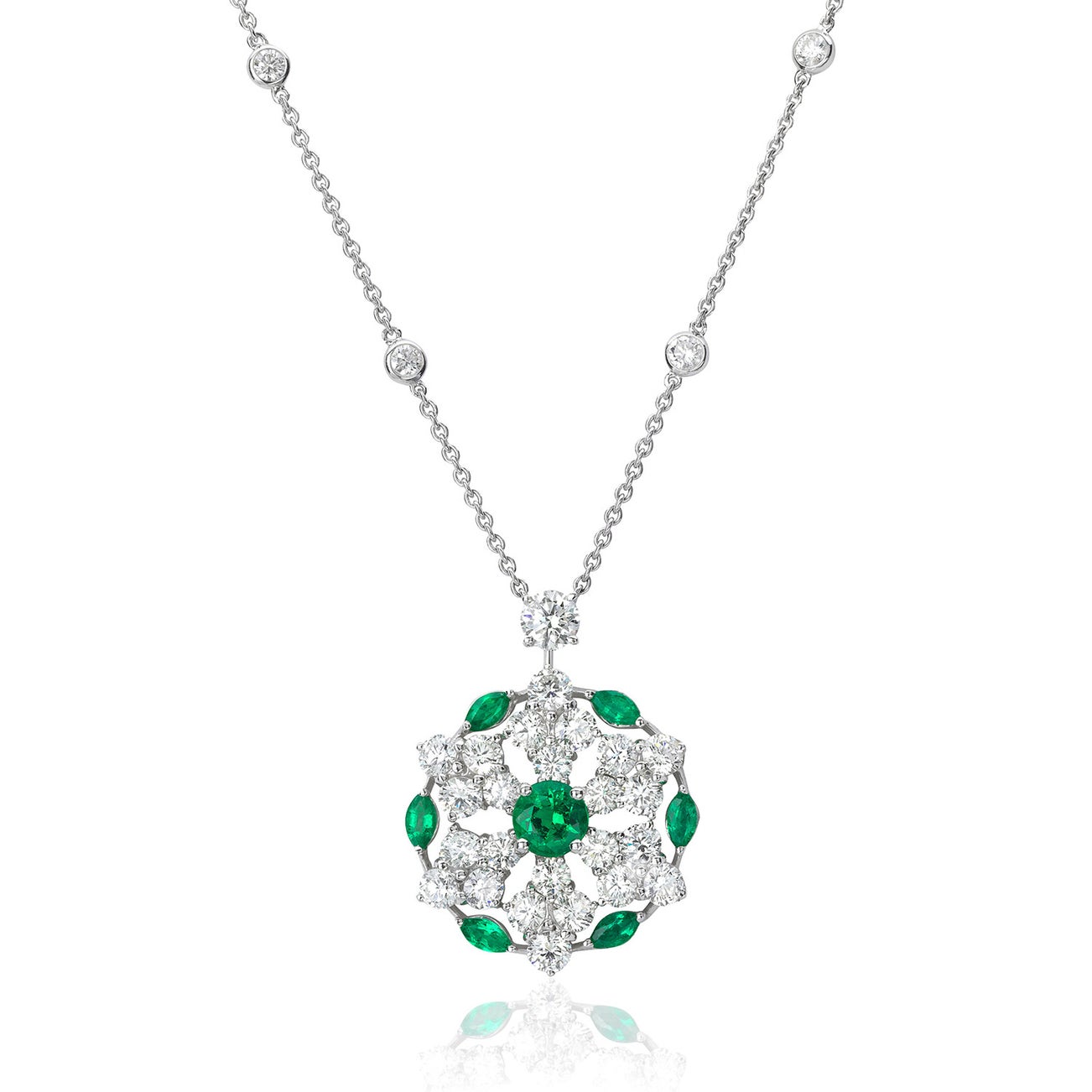 An Emerald, Diamond, and White Gold Necklace
