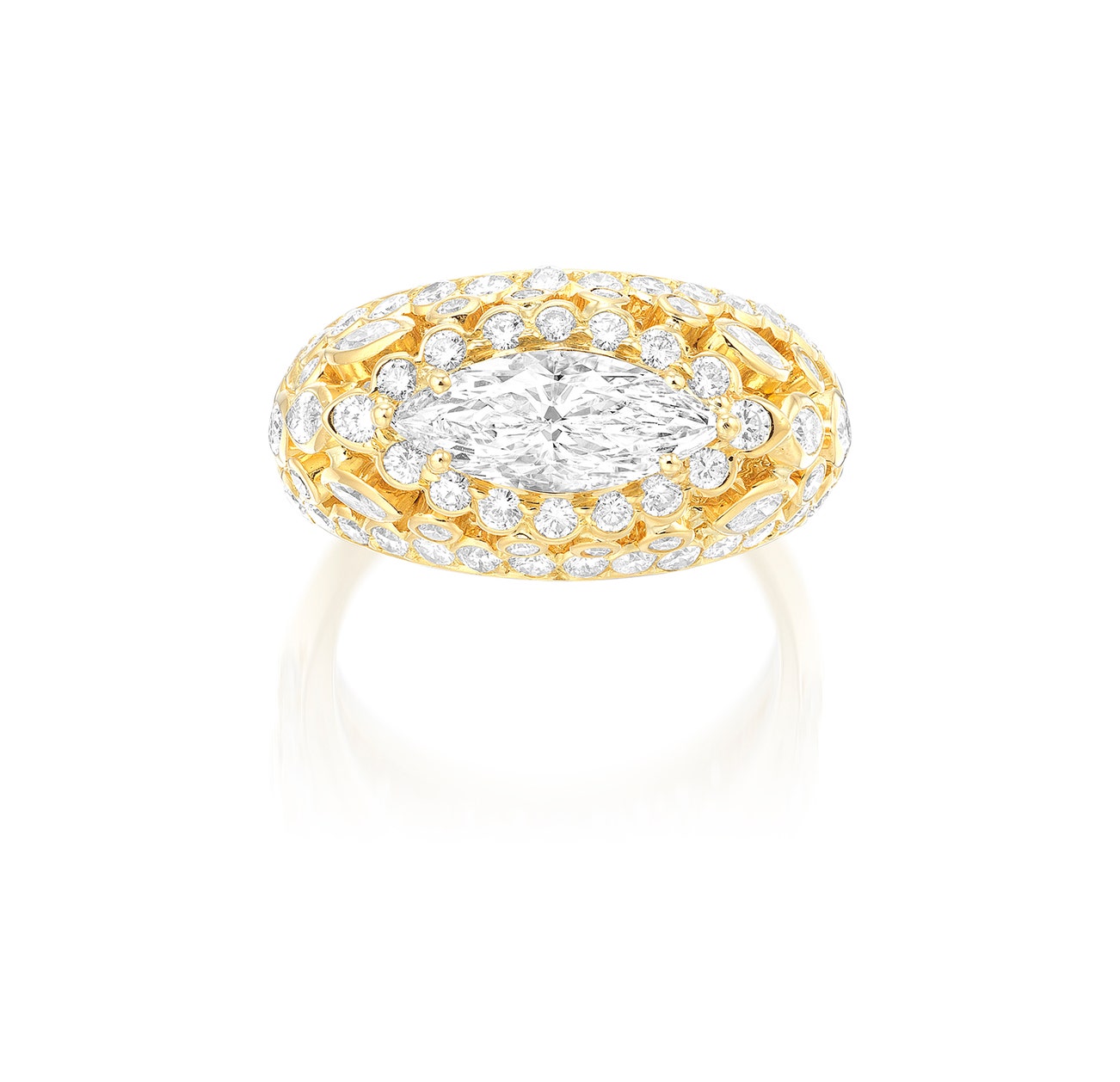 - Within a brilliant-cut diamond surround, to the openwork brilliant and marquise-cut diamond gallery and shoulders