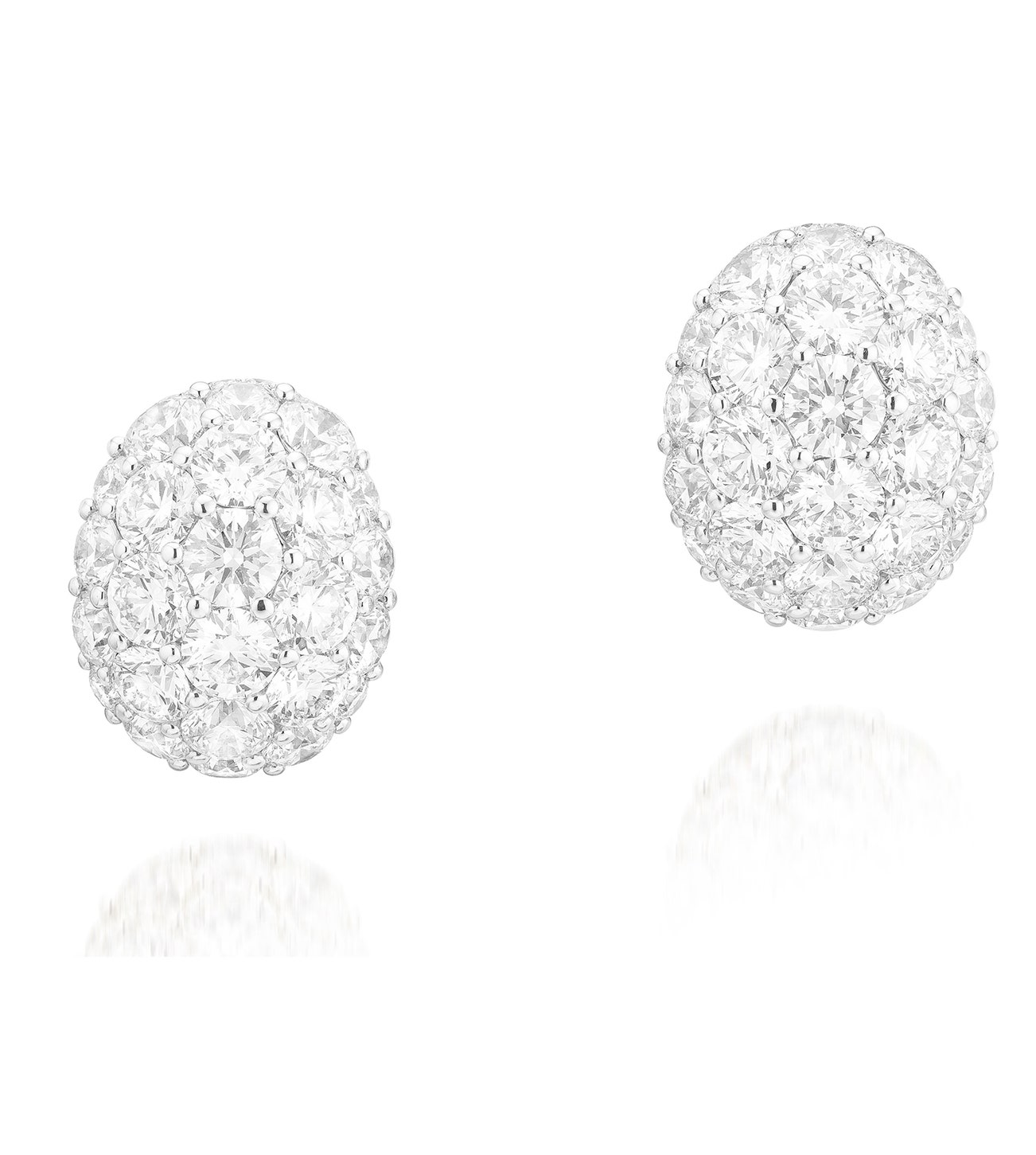 Of bombé design set with brilliant-cut diamonds, mounted in white gold, post and hinged back fittings, signed Graff, numbered, case stamped Graff.