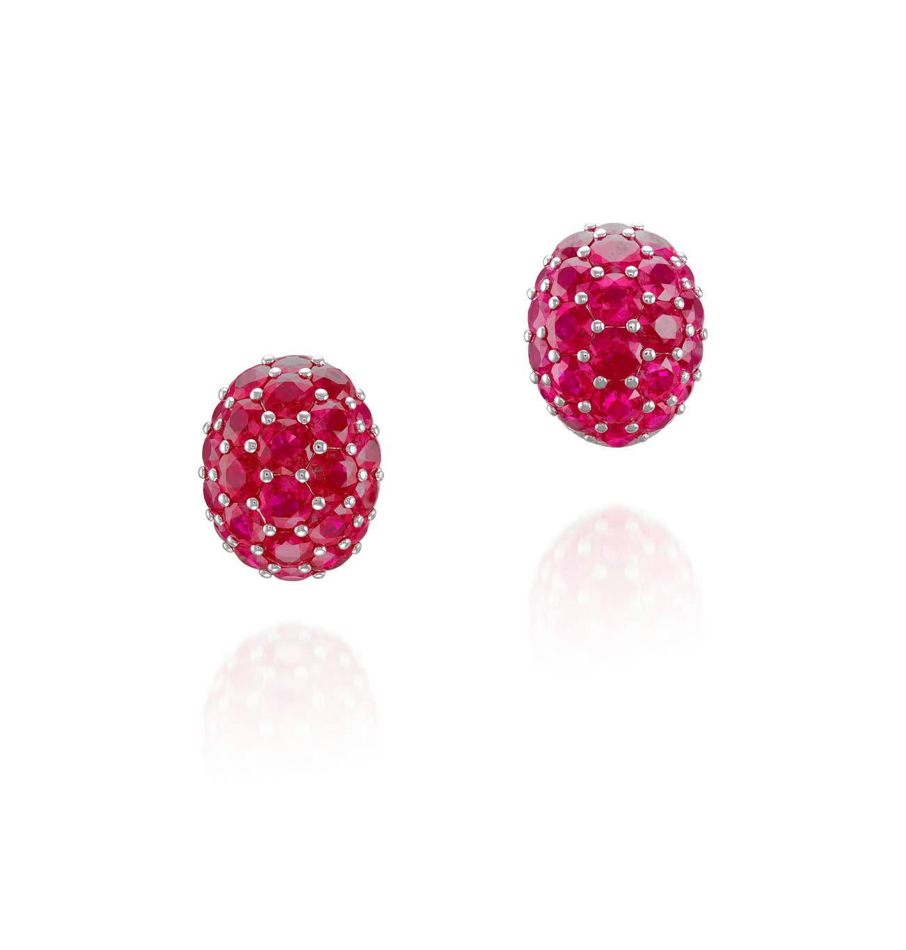 Pair of Ruby and Diamond Earrings, 'Bombé'