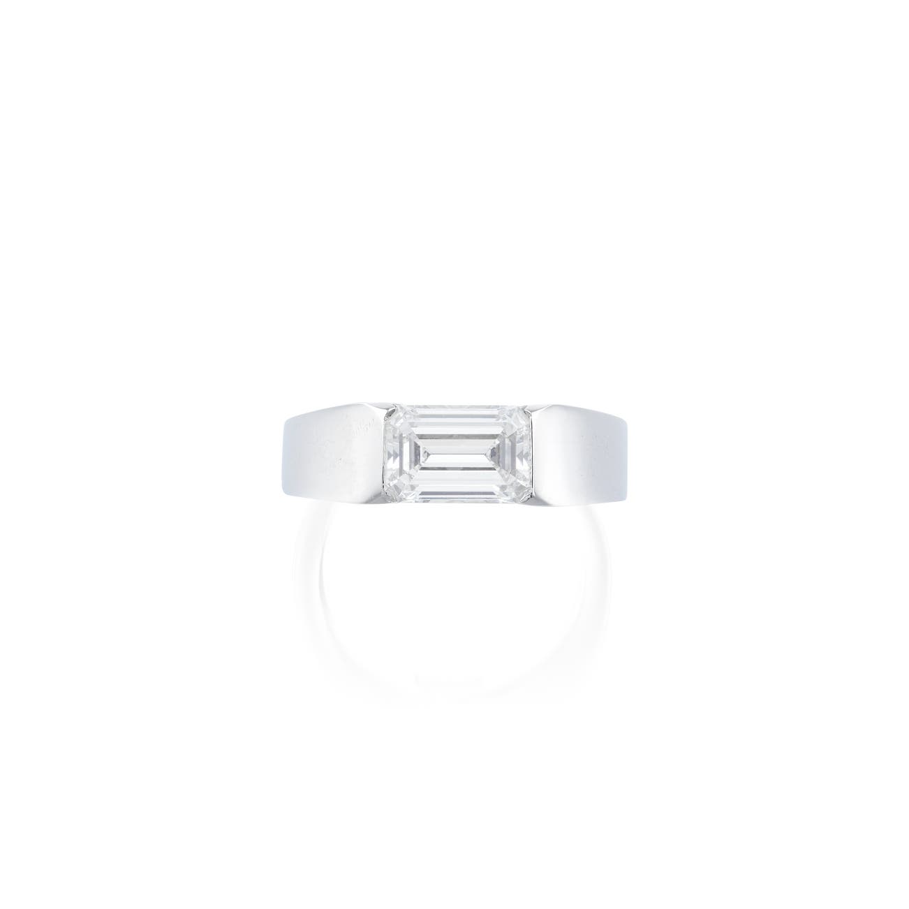 Set with a step-cut diamond weighing 2.42 carats, signed Graff, size 9, case signed Graff.