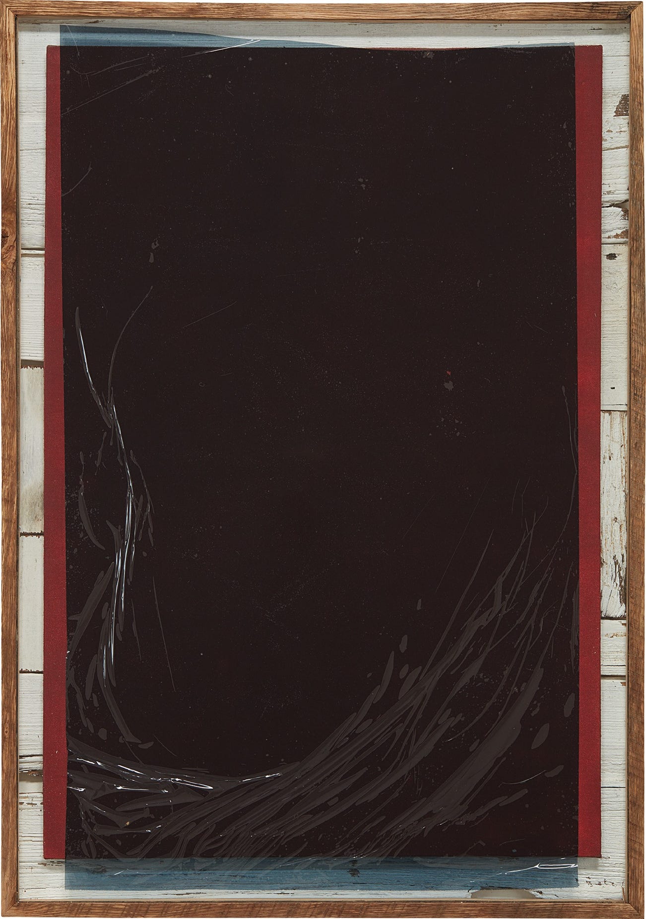 spray enamel on canvas, reclaimed wood, glass and window tint
