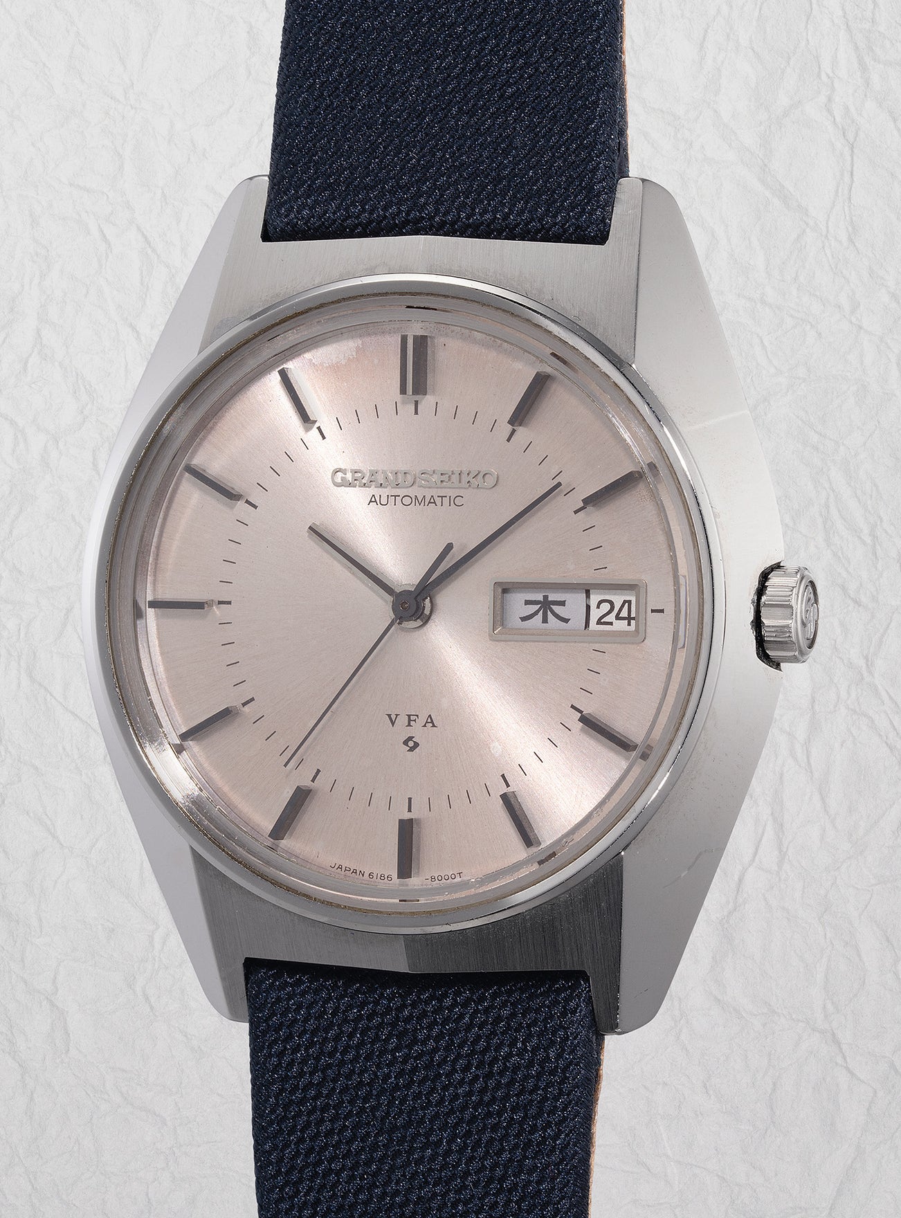 "The VFA was a pinnacle in Grand Seiko's history in terms of timekeeping accuracy and also represented a bold era of design for the brand, especially in terms of case shapes. The slim hands and tall markers are also an unusual and charming detail. I wore this watch the first time I visited Grand Seiko's manufacture as well as many other meetings with the company. It opened many doors for me and eventually was even featured in Matt Hranek's book "A Man and His Watch". With its unpolished stainless steel case, the silver sunburst dial of this present VFA has developed incredible charm. Aged with a tinted patina throughout, it has certainly become an extraordinary example." — Mark Cho