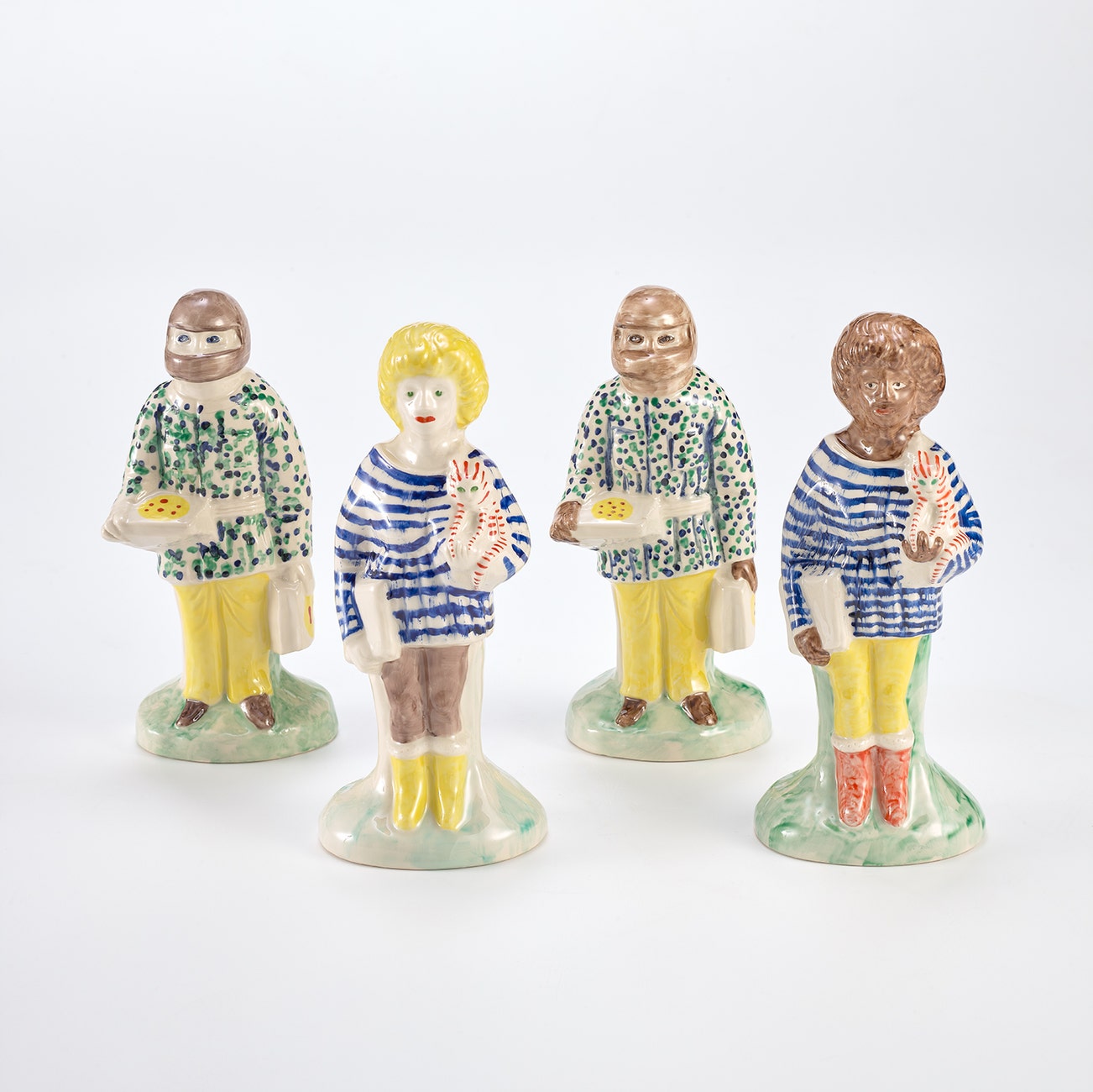 The complete set of four white earthenware ceramic figures painted in colours and glazed.