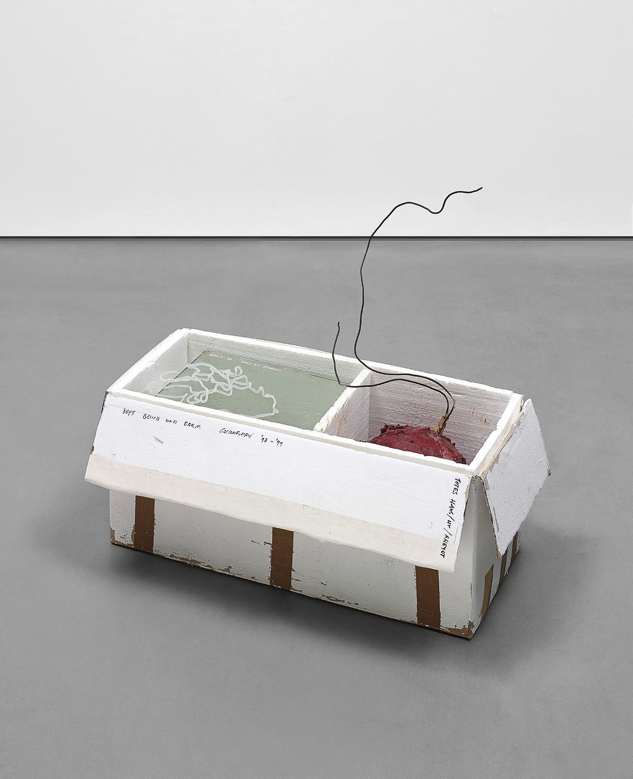 titled and dated 'KOPF BAUCH UND DARM '97-'99' on the painted cardboard; further dated ''97' on the glass