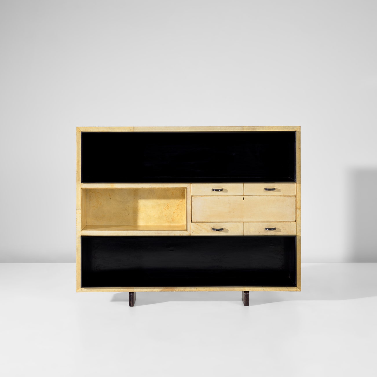 Bookcase with integrated drop-front cabinet