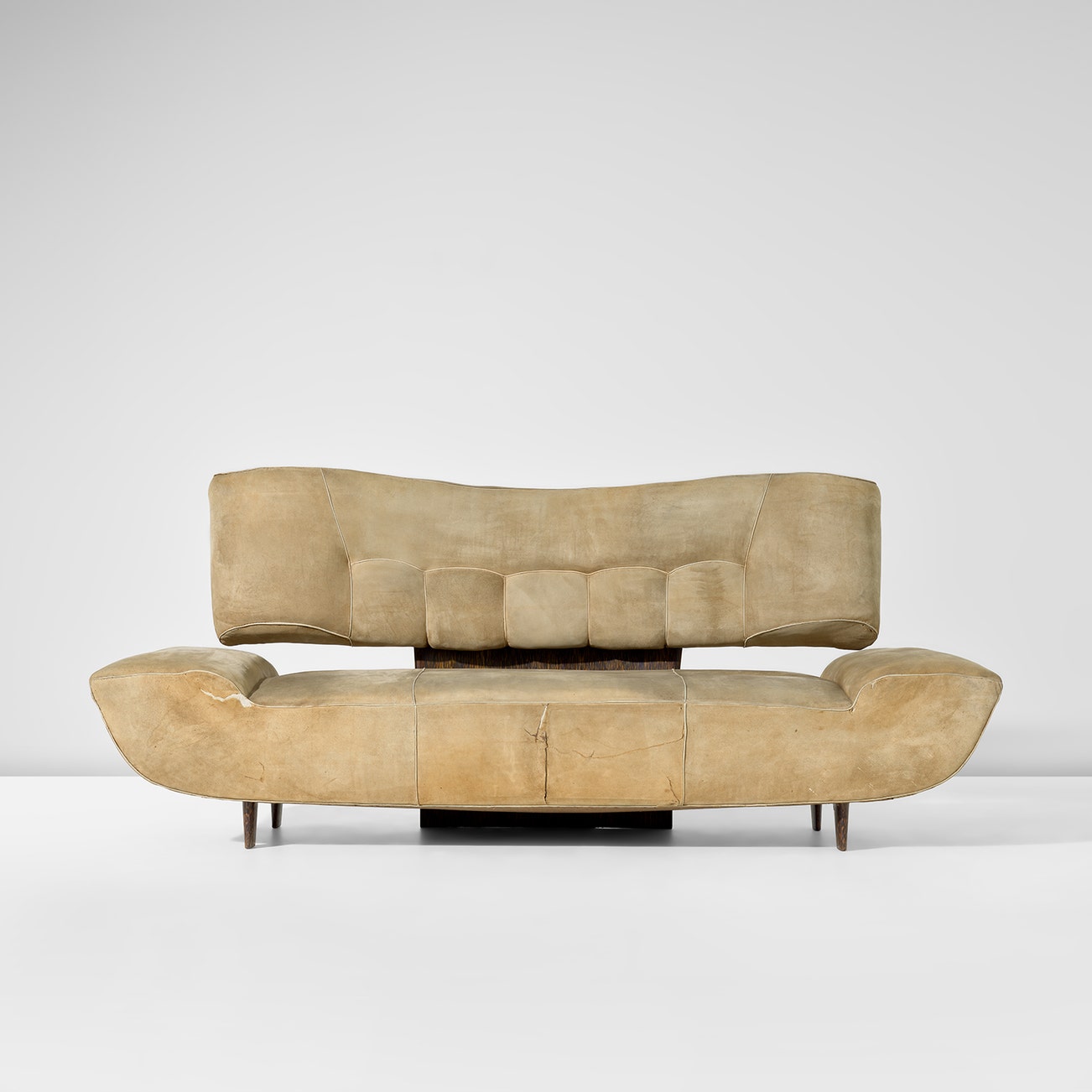 Suede, palm wood, palm wood-veneered wood.