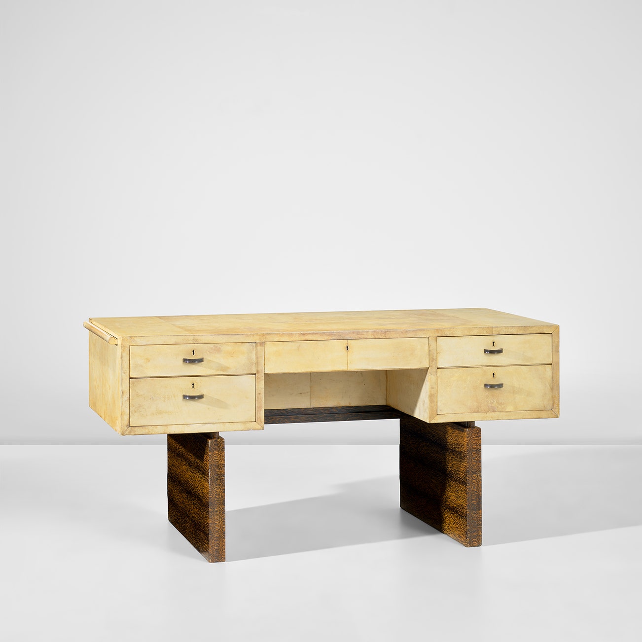 Parchment-covered wood, palm wood-veneered wood, palm wood, ebonised wood, ebonised veneered wood, horn.