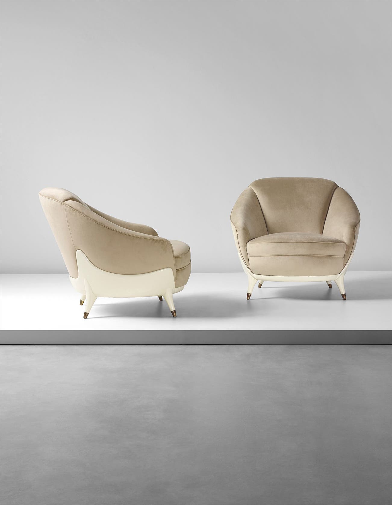 Manufactured by I.S.A., Bergamo, Italy. Underside of one with manufacturer's metal label IMBOTTITURA BREVETTATA I.S.A/MOLLEGGIO SPIRAL SPRING/Gomma Cellulare 'CIGNO'/MODELLO DEPOSITATO.