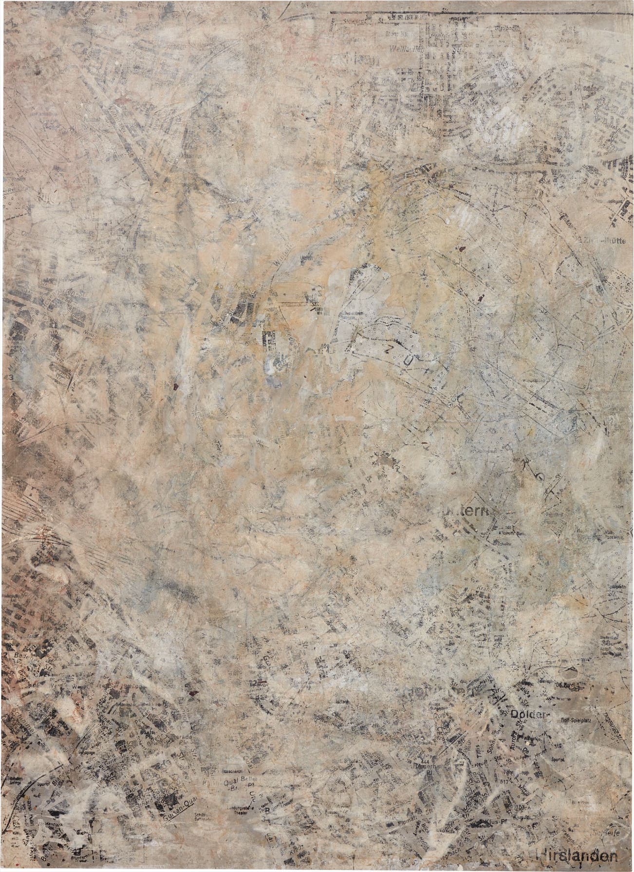Kuitca’s oeuvre and his sophisticated map series are also influenced by a diverse and interdisciplinary group of artists that include the painters Antoni Tapies and Francis Bacon, as well as the renowned Conceptual artist, Jenny Holzer. Another important influence was the famous German choreographer, Pina Bausch, as her work inspired Kuitca to become involved with the theater. This involvement allowed him to introduce a compelling element to his paintings, that of scale, in which the physical enormity of these paintings becomes theatrical. This shift to theatricality within his oeuvre can also be seen in the way these maps readily reflect an intense sentiment of sadness, inducing in the viewer thoughts of exile and social estrangement. Kuitca’s complex conceptual approach, theatricality and sophisticated craftsmanship attest to his importance within international contemporary art and his contribution to the canon of the history of art.