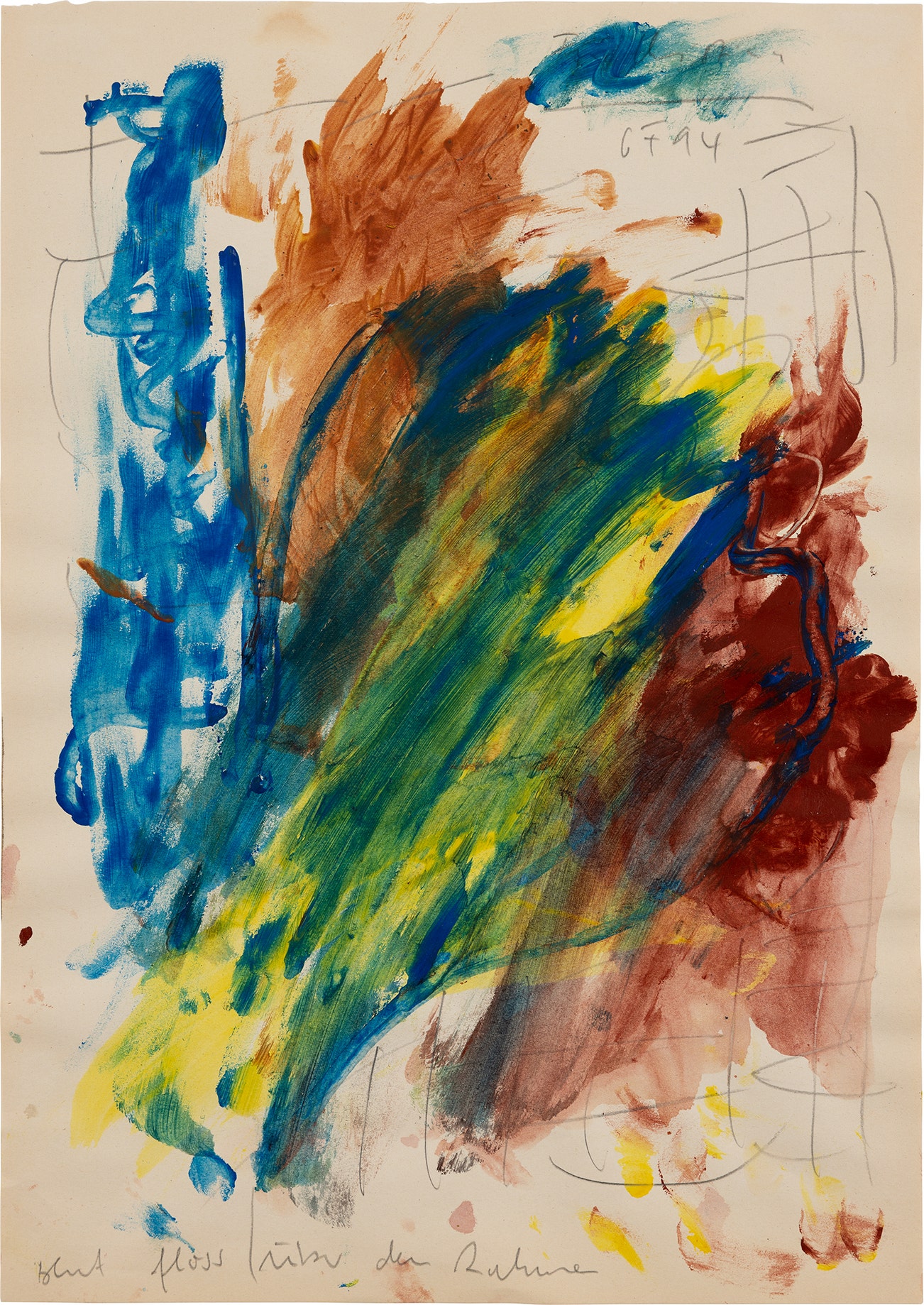 signed with the artist's initials and dated 'GF 94' upper right; inscribed 'Blut floss über den Rahmen' lower left