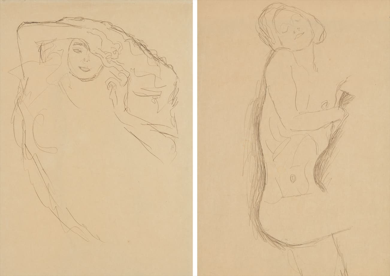 Please note that these works are studies done for the unfinished painting Die Braut, Novotny-Dobai no. 222, painted in 1917-1918.