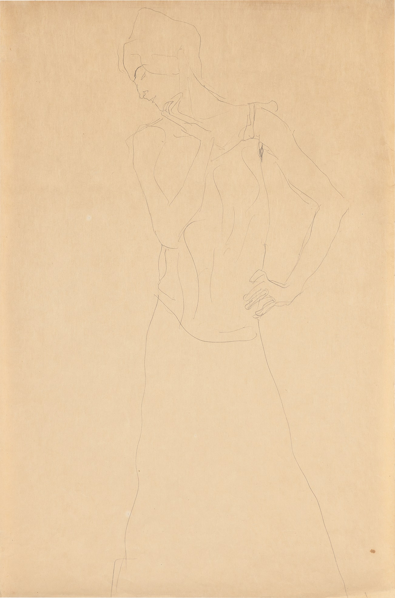 Frontal stehend, linke Hand an die Hüfte gelegt (Standing Woman with Hand on Hip)