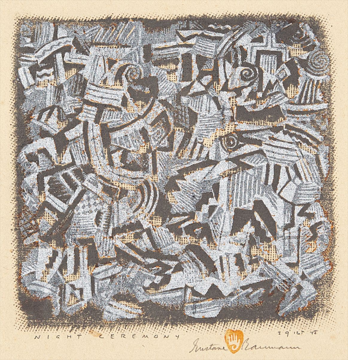 signed, titled, dated `48' and numbered `I 9 125' in pencil, with the Hand-in-Heart inkstamp, framed.