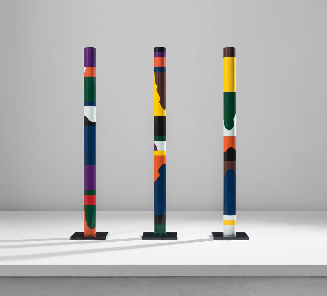 Interior of each tube with label signed in marker Rougemont, impressed colonne P.S., printed société branger lajoix/23130 peyrat la nonière/france/rougemont 1976 and further impressed n° 14/23, n° A 15/23, and n° B 15/23, respectively.