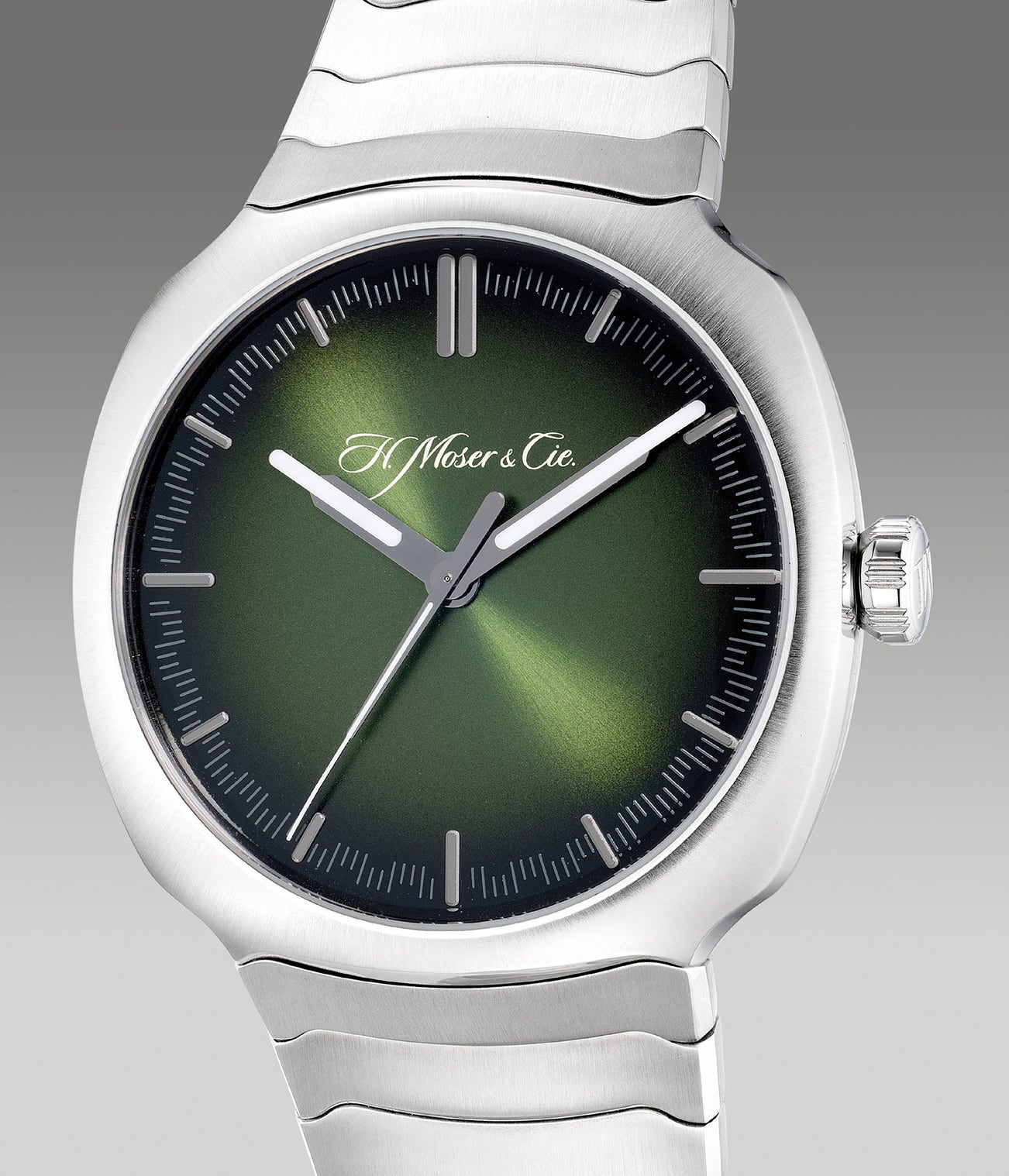While sports wristwatches have witnessed a meteoric rise in demand and value in recent years, manufacturers have all rushed to create their own with some succeeding and some overshadowed by existing models. At the beginning of 2020, H. Moser & Cie introduced the Streamliner Flyback Chronograph with a whole new design inspired from aesthetics during The Great Depression in the 1930s, more specifically aerodynamic streamlined locomotives from the era. In the second half of the year, H. Moser & Cie released their second Streamliner model featuring a time only three hand wristwatch with center seconds adopting the same case design as the Flyback Chronograph launched earlier in the year. Differing from the stereotypical blue dial featured in most sports watches, H. Moser & Cie opted for their signature matrix green fumé dial which they have mastered over the years. The construction of the case is further second to none as it features fluid lines that gives the case a distinct appeal. However, the most interesting feature is perhaps the firm’s first integrated stainless steel bracelet. With an aim to create a comfortable one link bracelet that is completely fresh, the bracelet takes its inspiration from the Streamlined moderne style of the 1930s removing all straight lines with smooth arced lines that gives the whole timepiece a speedy look with a comfortable wrist presence.