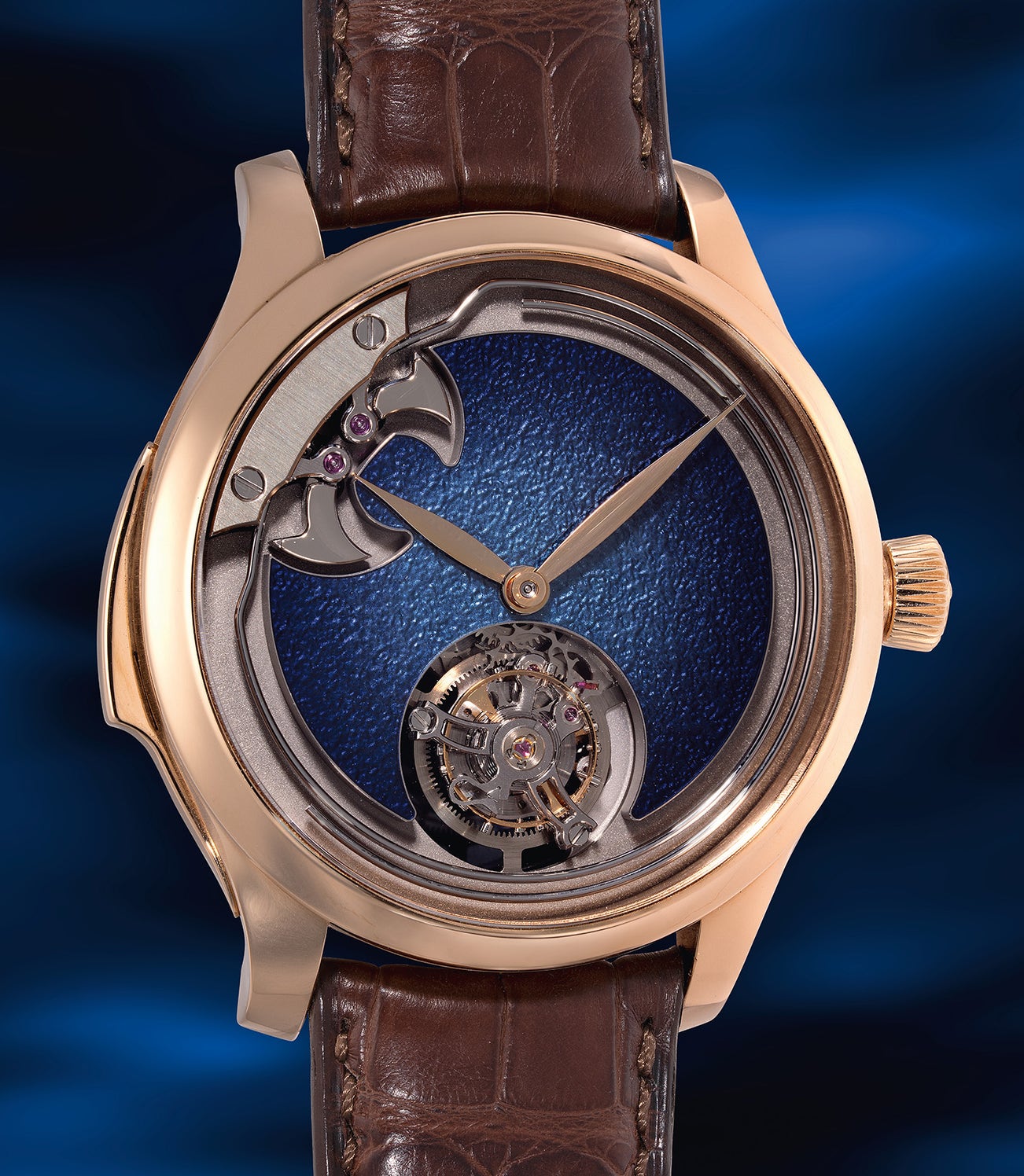 A rare and contemporary limited edition red gold minute repeating tourbillon wristwatch with grand feu Aqua blue fumé enamel dial, guarantee and presentation box, one of a limited edition of 20 pieces