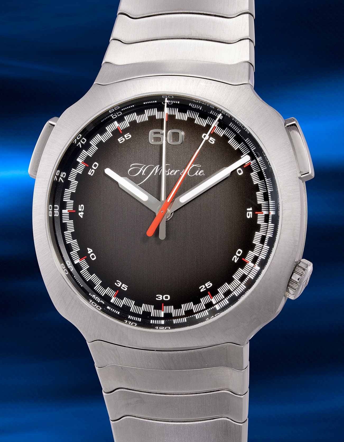 - At the beginning of 2020, H. Moser & Cie introduced the Streamliner stainless steel flyback chronograph with a new aesthetic based on early 20th-century design. The 1930s style is reflected in the case with aerodynamic lines similar to locomotives of the era. The fluid lines have a distinctive flair, and the watch is offered with H. Moser & Cie’s first-ever, integrated wave-like bracelet. The exhibition sapphire crystal back is stamped “Limited 100” indicating the rarity of this chronograph.