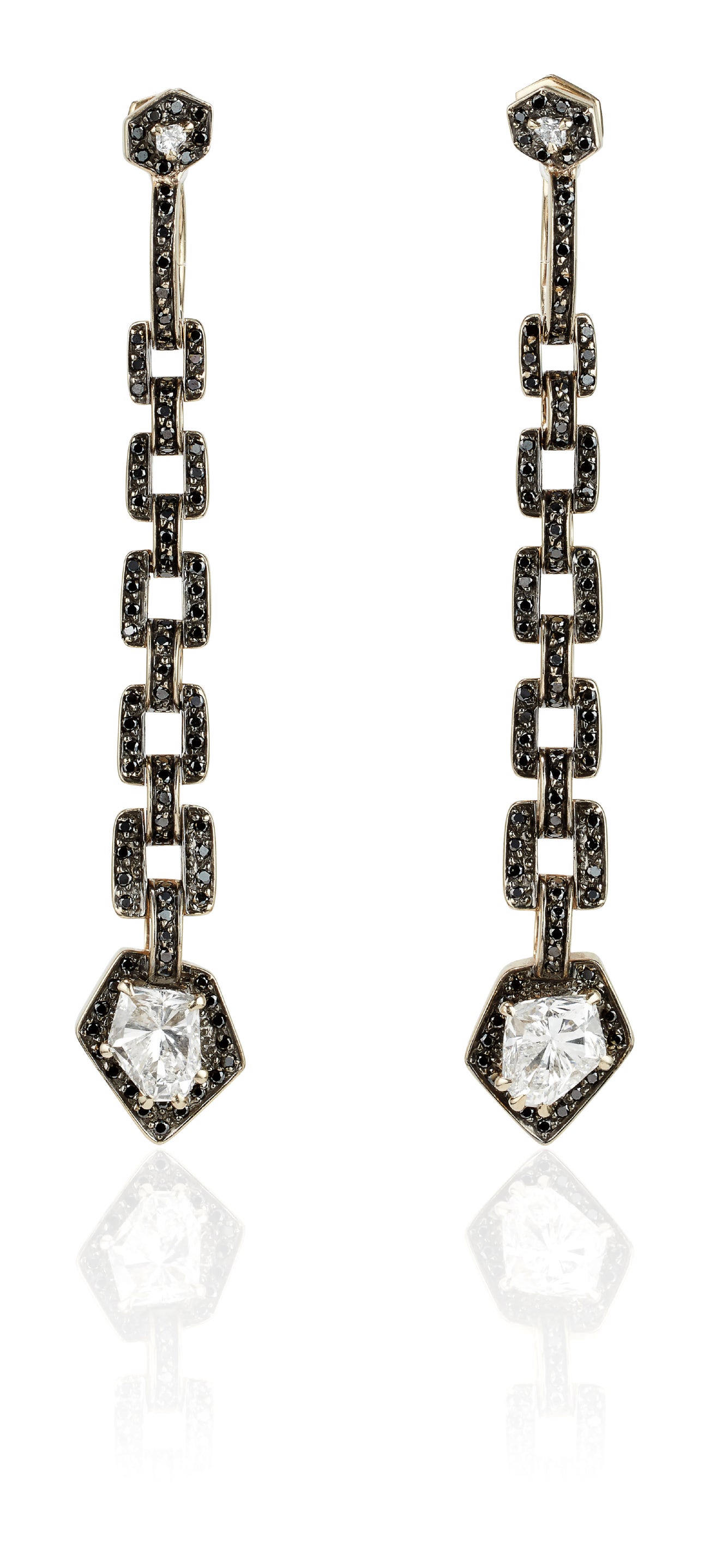 A Pair of Diamond, Colored Diamond and Gold Earrings