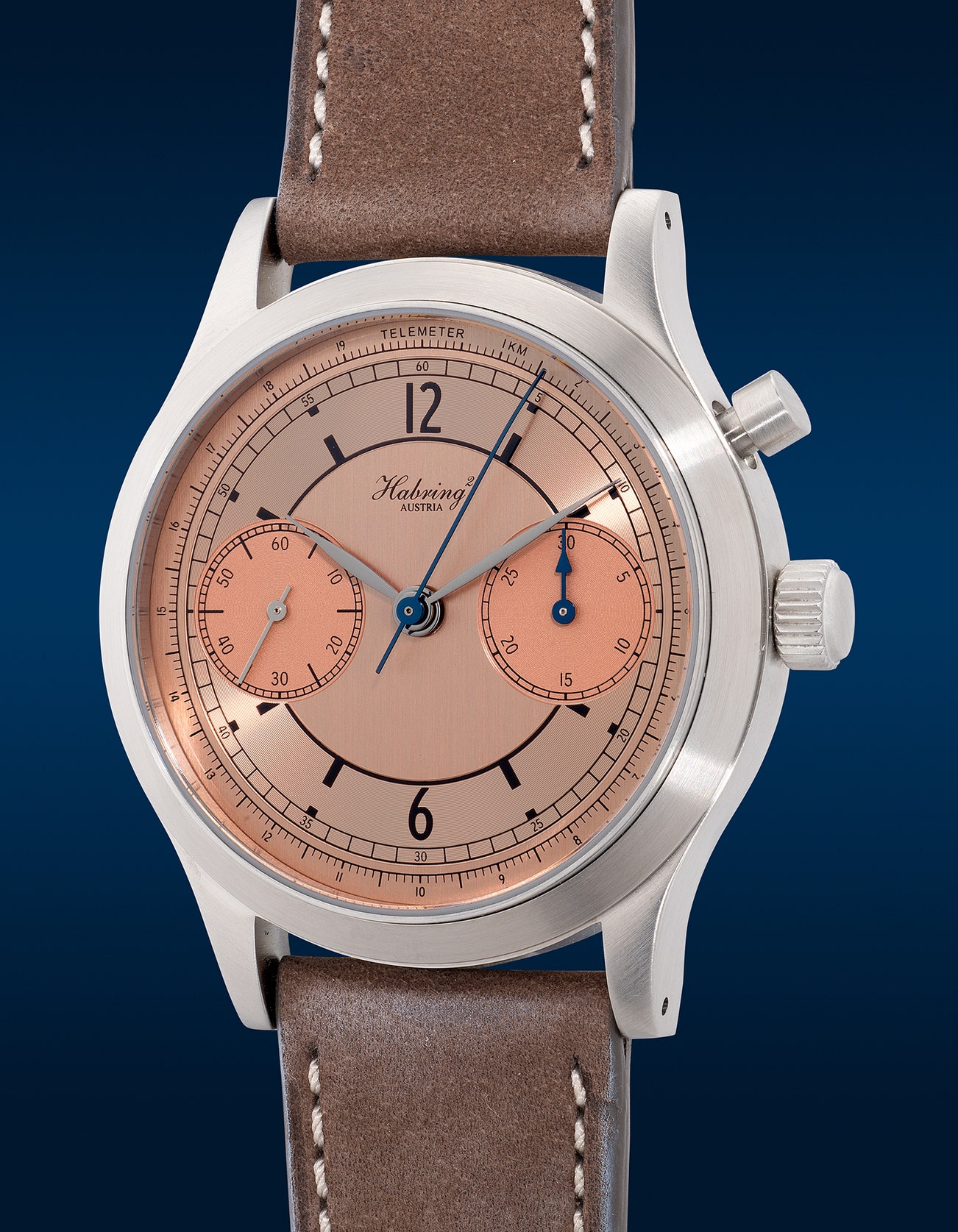 - Yet it is the salmon dial that immediately captivates the eye. Habring2 applies their mastery of texture to achieve a dial that radiates in varying hues. Sector design details, reminiscent of 1940s chronographs, align gracefully with blued steel hands.