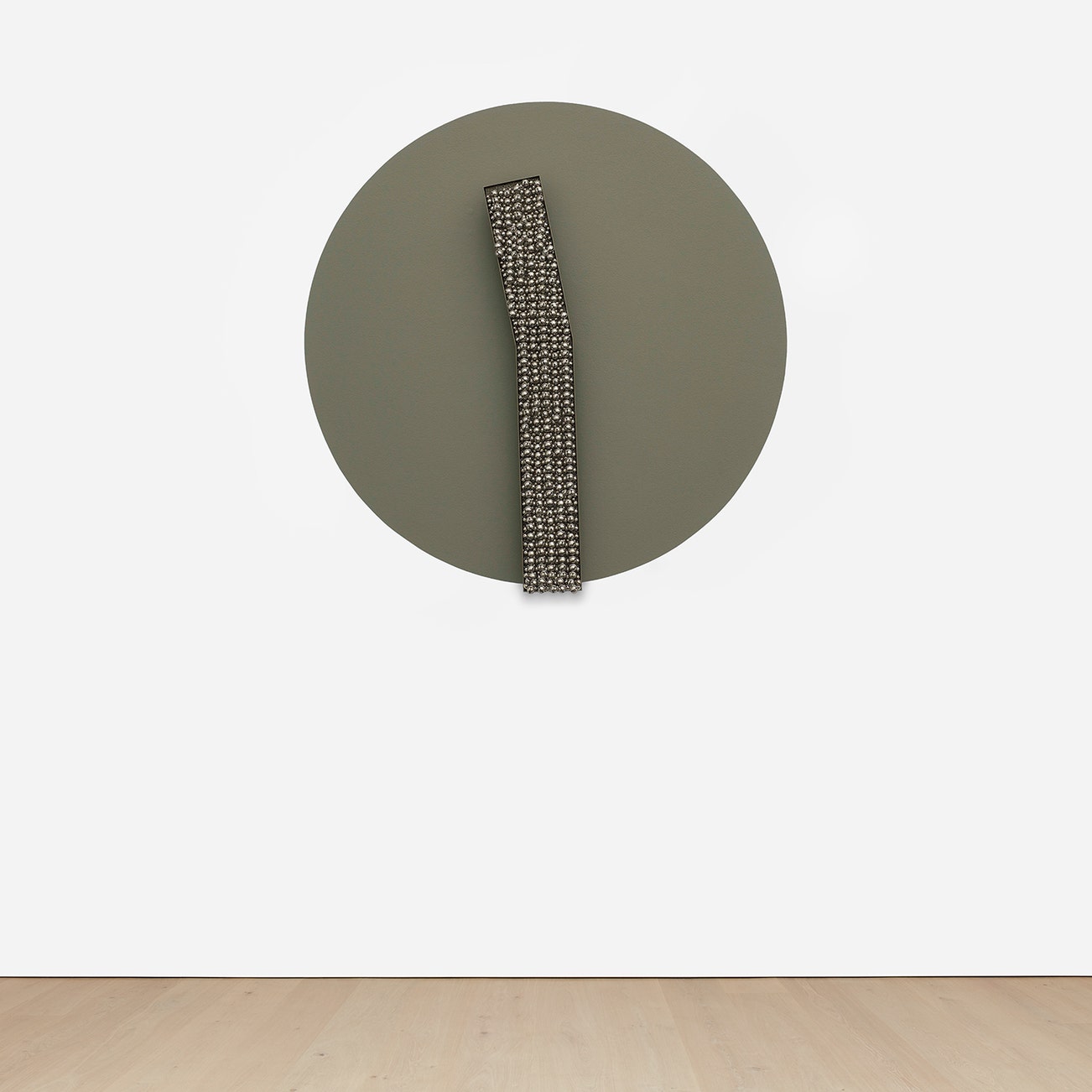 wall paint, powder coated steel sheet, ball bearings, metal grid, nickel-plated bells and metal rings