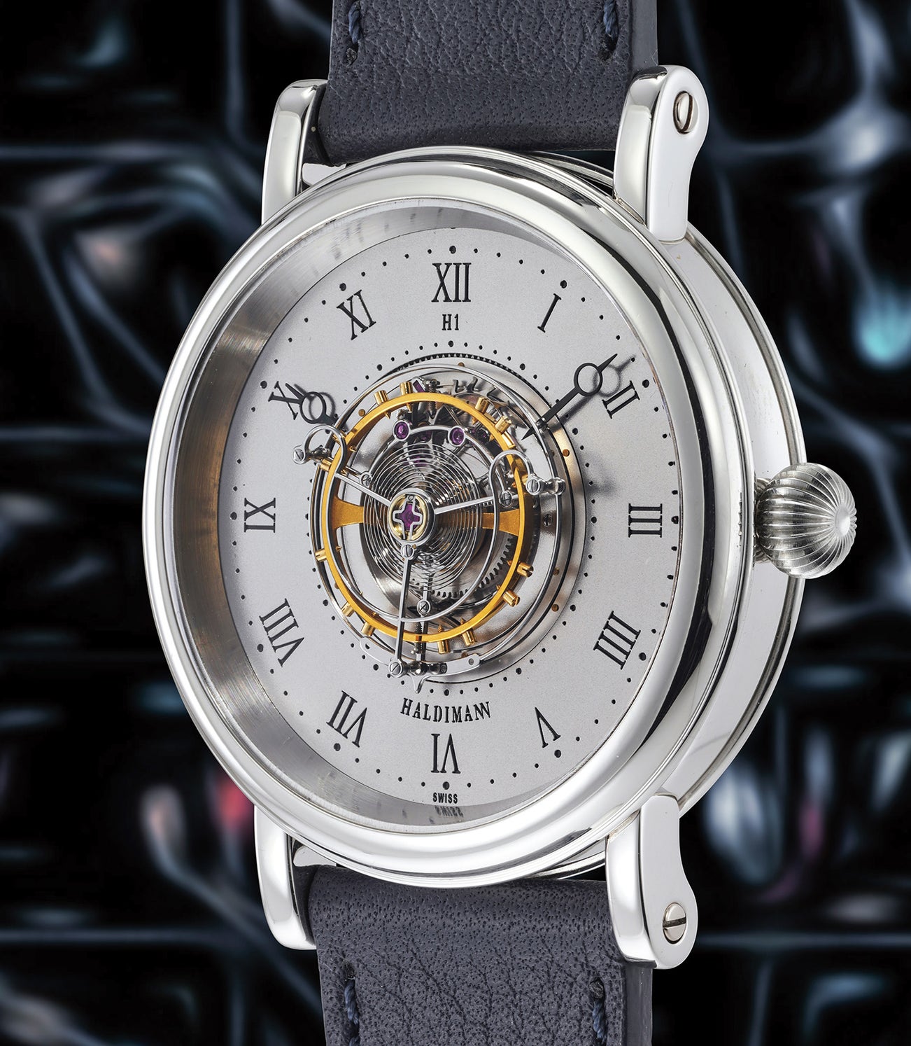 Haldimann’s original creations were complications such as repeaters, tourbillons simple or double with a resonance system. His approach was not only horological but also philosophical, with the creation of a watch with a central tourbillon with no hands (H3) and even a timepiece with a darkened crystal blocking the view on the hands, thus keeping time but not showing it (H9).