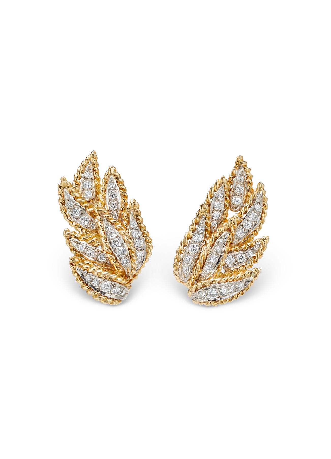 A Pair of Diamond and Gold Earrings
