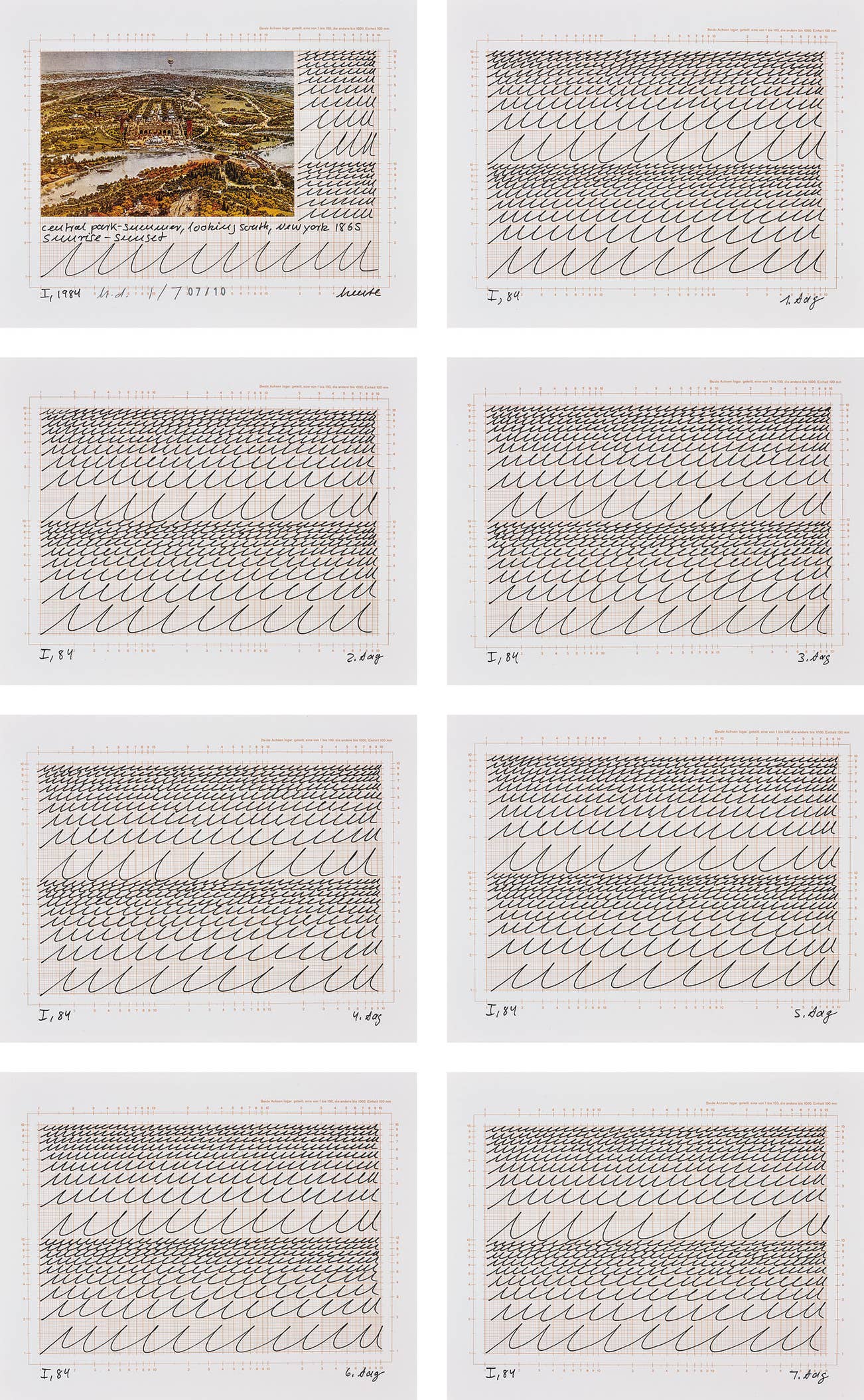 The complete portfolio of 96 prints comprised of twelve sets of eight laser prints in colours, each set representing one month of the year, one of each set with attached chromogenic print, on logarithmic paper, with full margins.