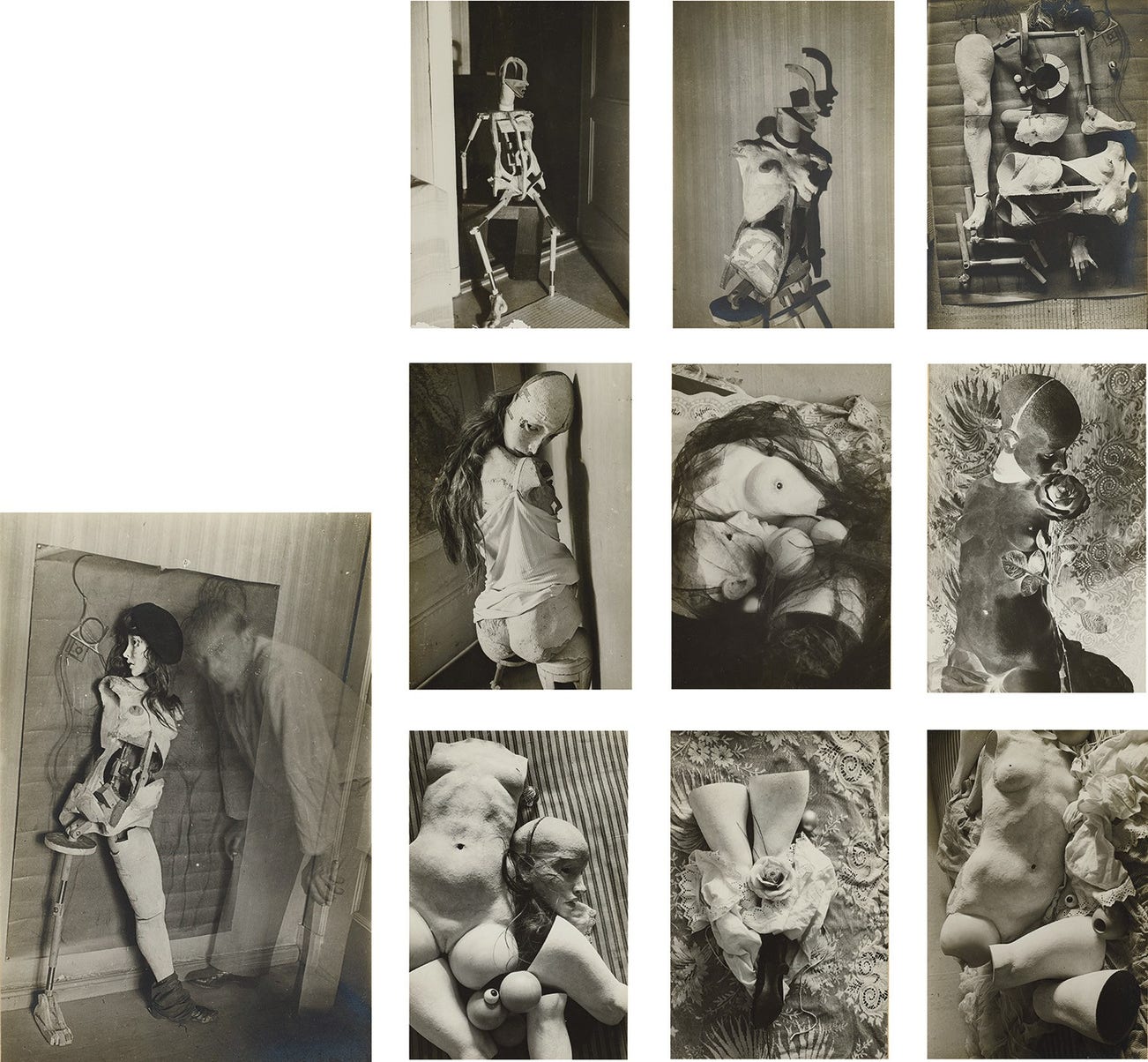 Paris: Editions GLM, 1936. 10 gelatin silver prints, each mounted to thin board, disbound; printed ivory jacket, rose-coloured endpapers and text pages, publisher’s subscription inserts for Les Jeux de la Poupée and associated printed matter. An unnumbered publishers copy.