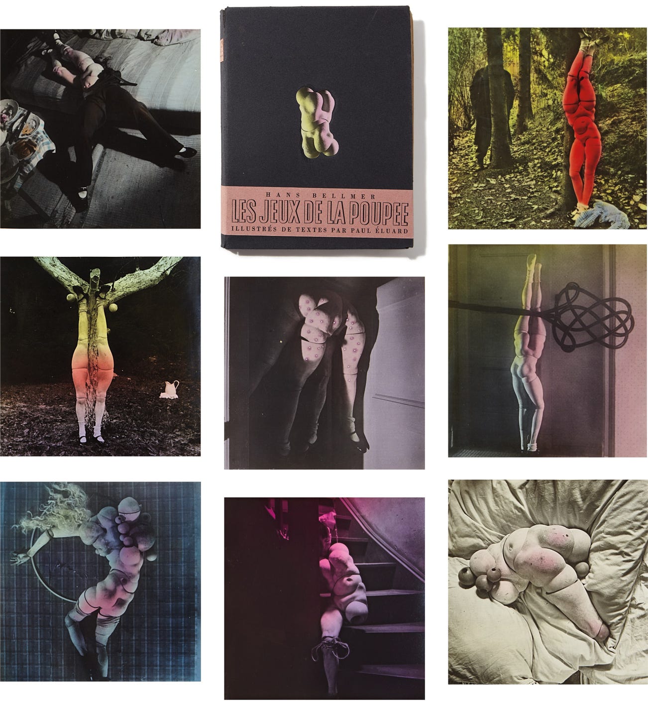 by Éditions Premières in Paris, as Les jeux de la poupée (The Games of the Doll), of which the current lot is an example, was published a decade later in an edition of 136. While the great majority of the books have been broken up, the current lot is a rare example of the complete book, presented as it had been originally intended by Bellmer and Éluard.