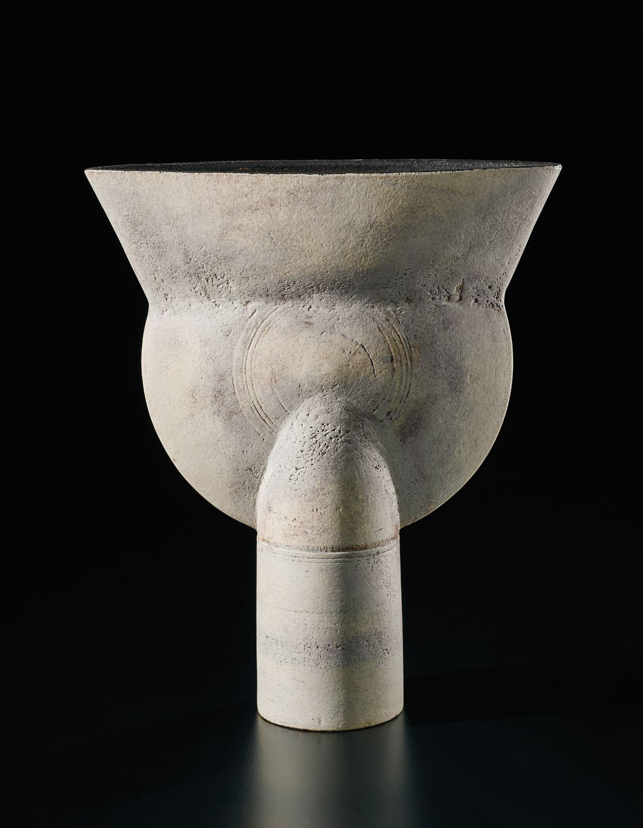In the last phase of his career, Coper reduced the scale of his work creating small "Cycladic" pots that stood on pedestals or drums, recalling the clay figures of Bronze Age Greece.