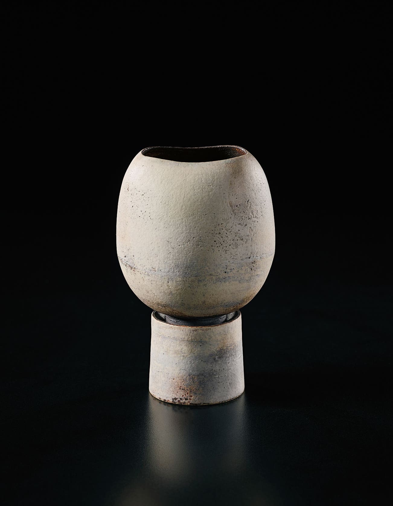In the last phase of his career, Coper reduced the scale of his work creating small "Cycladic" pots that stood on pedestals or drums, recalling the clay figures of Bronze Age Greece.