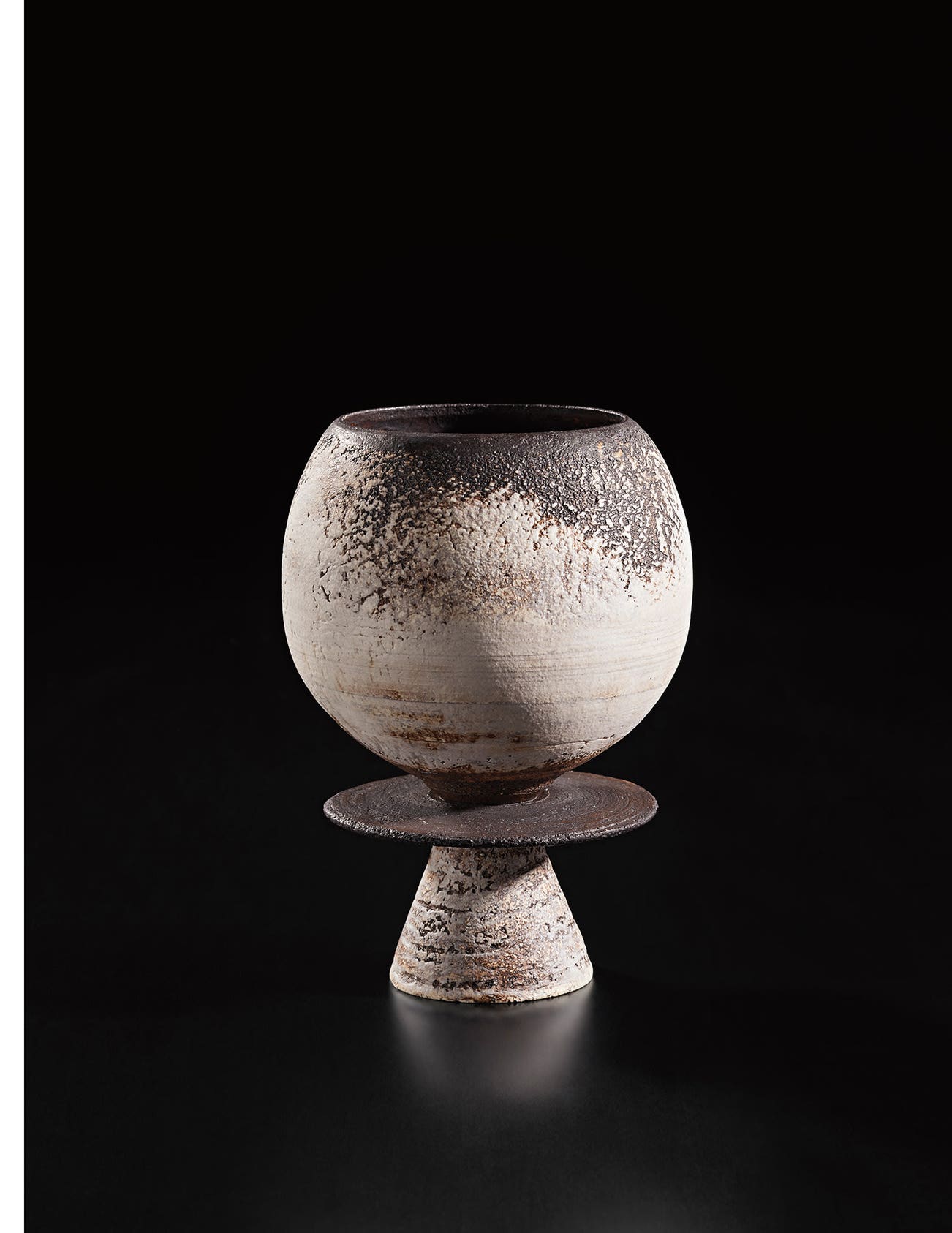 In the last phase of his career, Coper reduced the scale of his work creating small "Cycladic" pots that stood on pedestals or drums, recalling the clay figures of Bronze Age Greece.