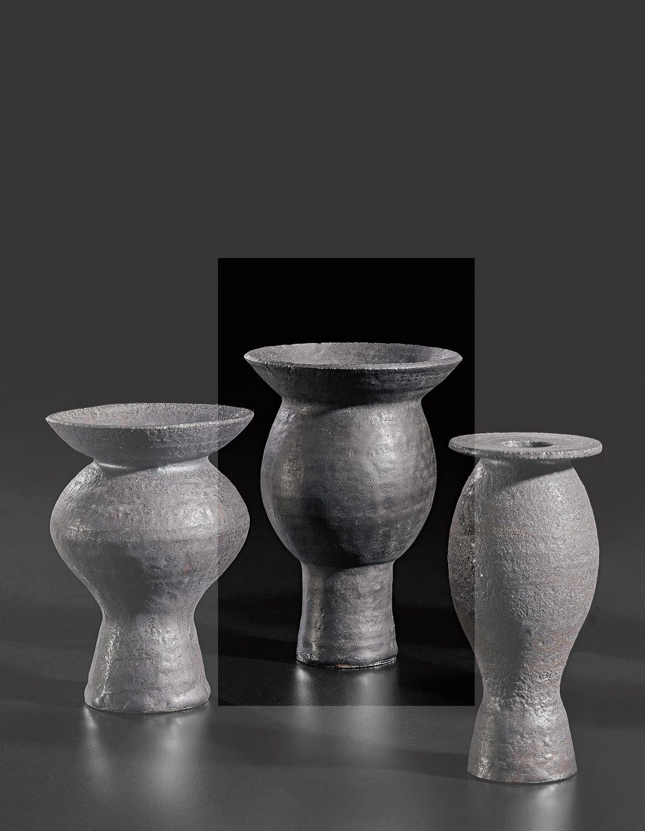 In the last phase of his career, Coper reduced the scale of his work creating small "Cycladic" pots that stood on pedestals or drums, recalling the clay figures of Bronze Age Greece.