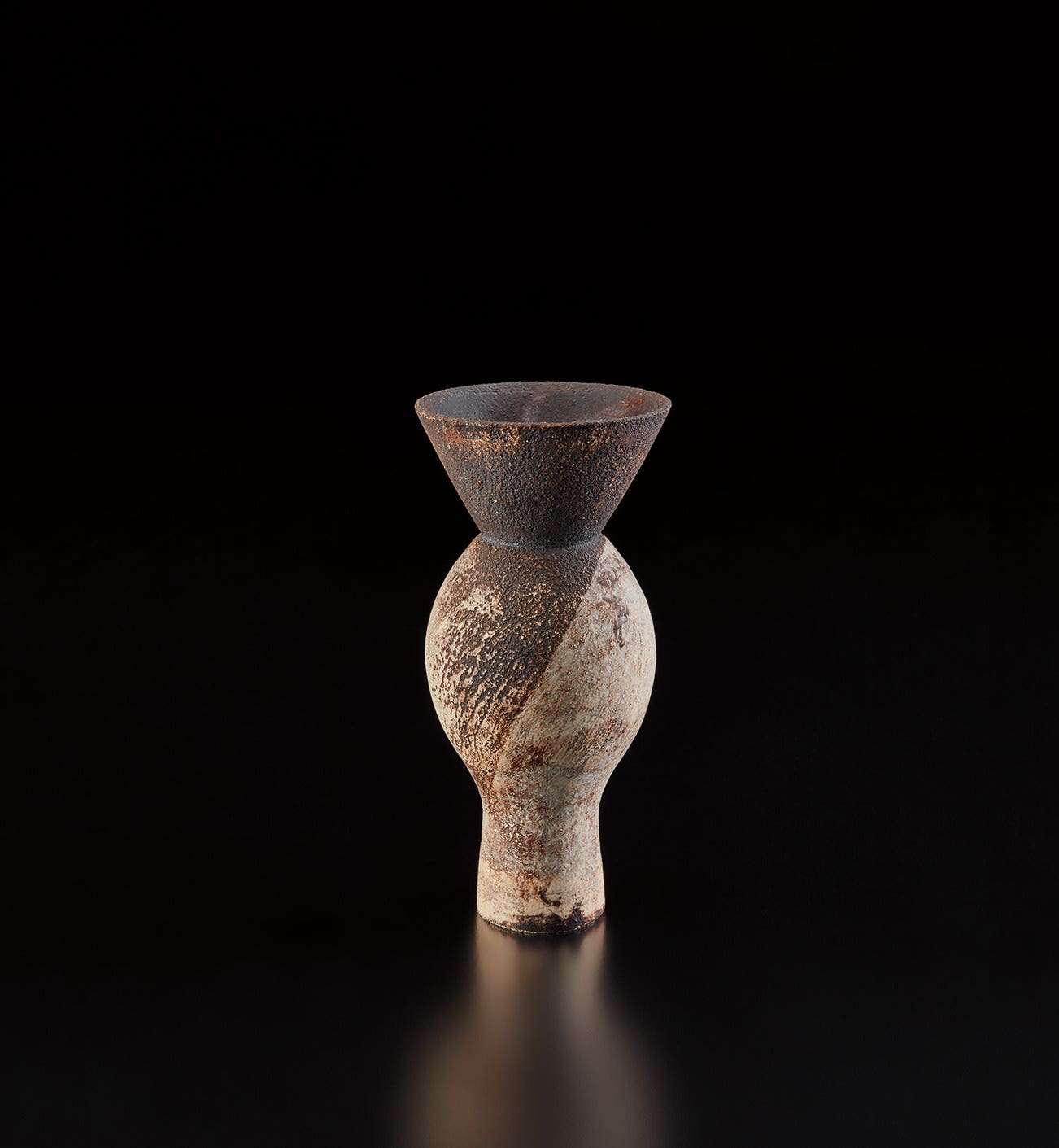 In the last phase of his career, Coper reduced the scale of his work creating small "Cycladic" pots that stood on pedestals or drums, recalling the clay figures of Bronze Age Greece.