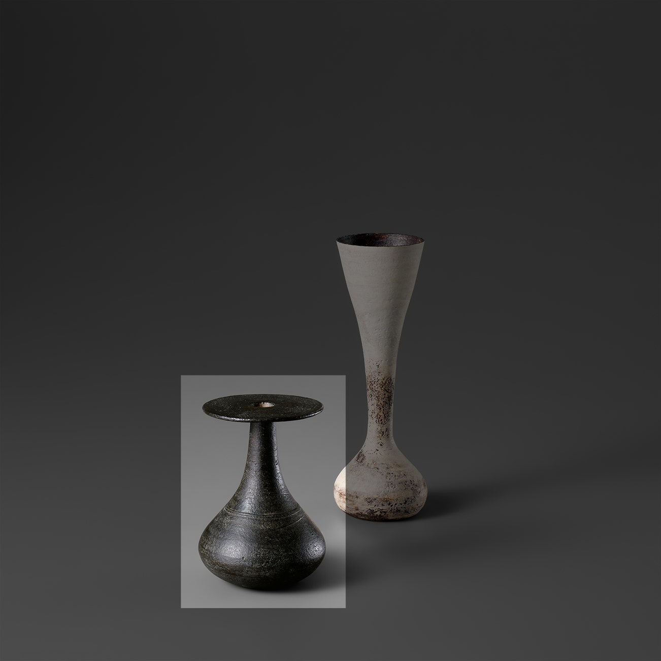 In the last phase of his career, Coper reduced the scale of his work creating small "Cycladic" pots that stood on pedestals or drums, recalling the clay figures of Bronze Age Greece.
