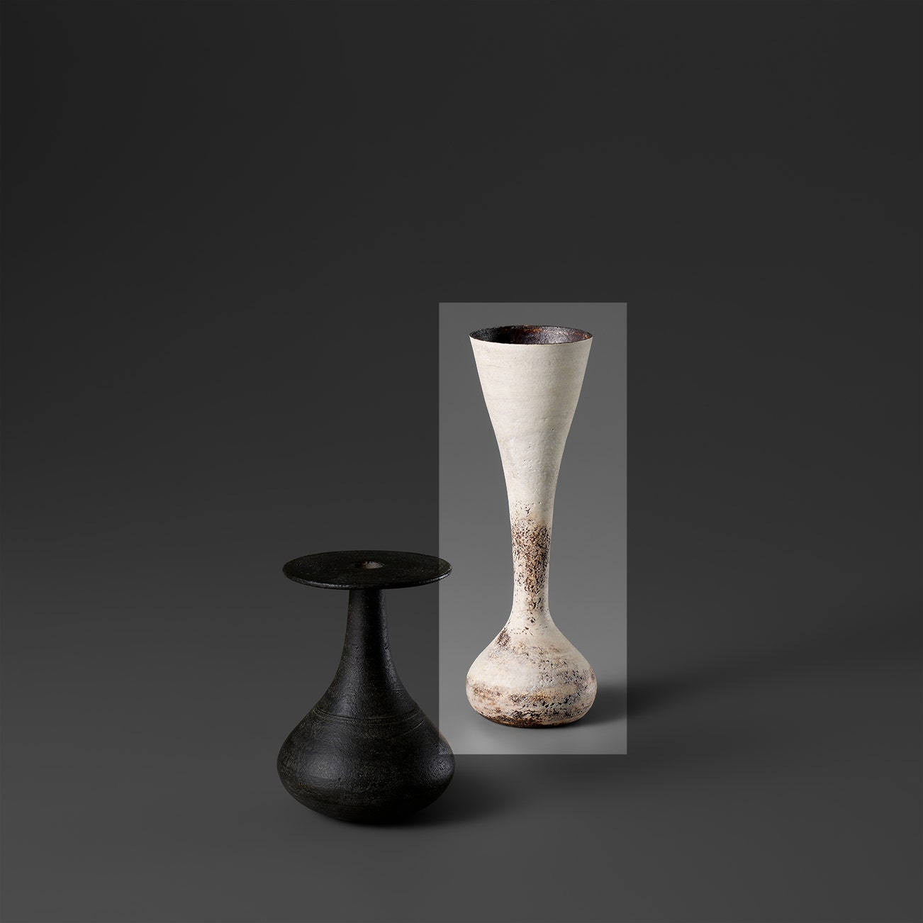 In the last phase of his career, Coper reduced the scale of his work creating small "Cycladic" pots that stood on pedestals or drums, recalling the clay figures of Bronze Age Greece.