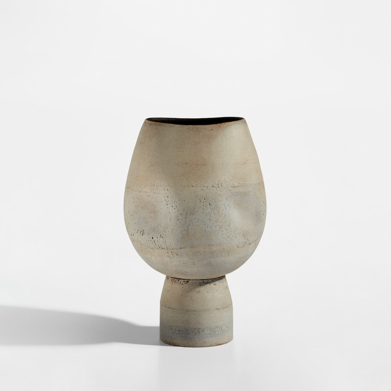 In the last phase of his career, Coper reduced the scale of his work creating small "Cycladic" pots that stood on pedestals or drums, recalling the clay figures of Bronze Age Greece.