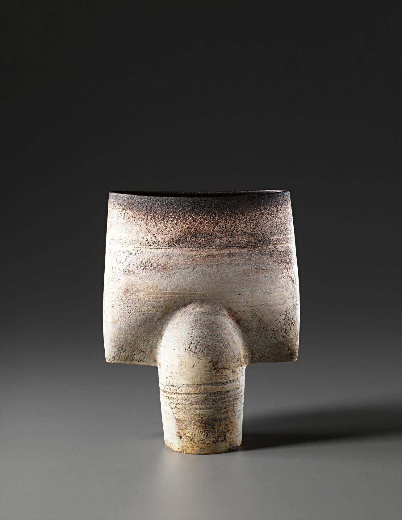 In the last phase of his career, Coper reduced the scale of his work creating small "Cycladic" pots that stood on pedestals or drums, recalling the clay figures of Bronze Age Greece.
