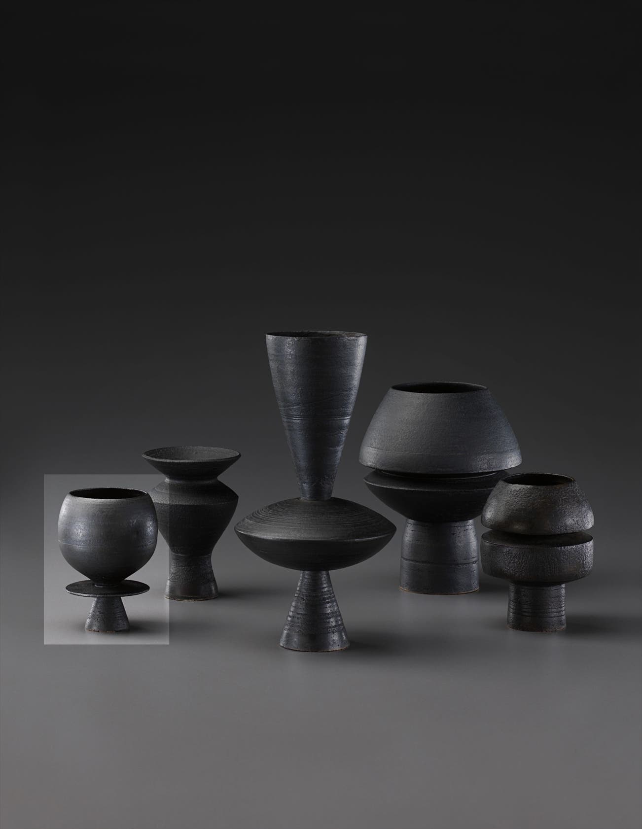 In the last phase of his career, Coper reduced the scale of his work creating small "Cycladic" pots that stood on pedestals or drums, recalling the clay figures of Bronze Age Greece.