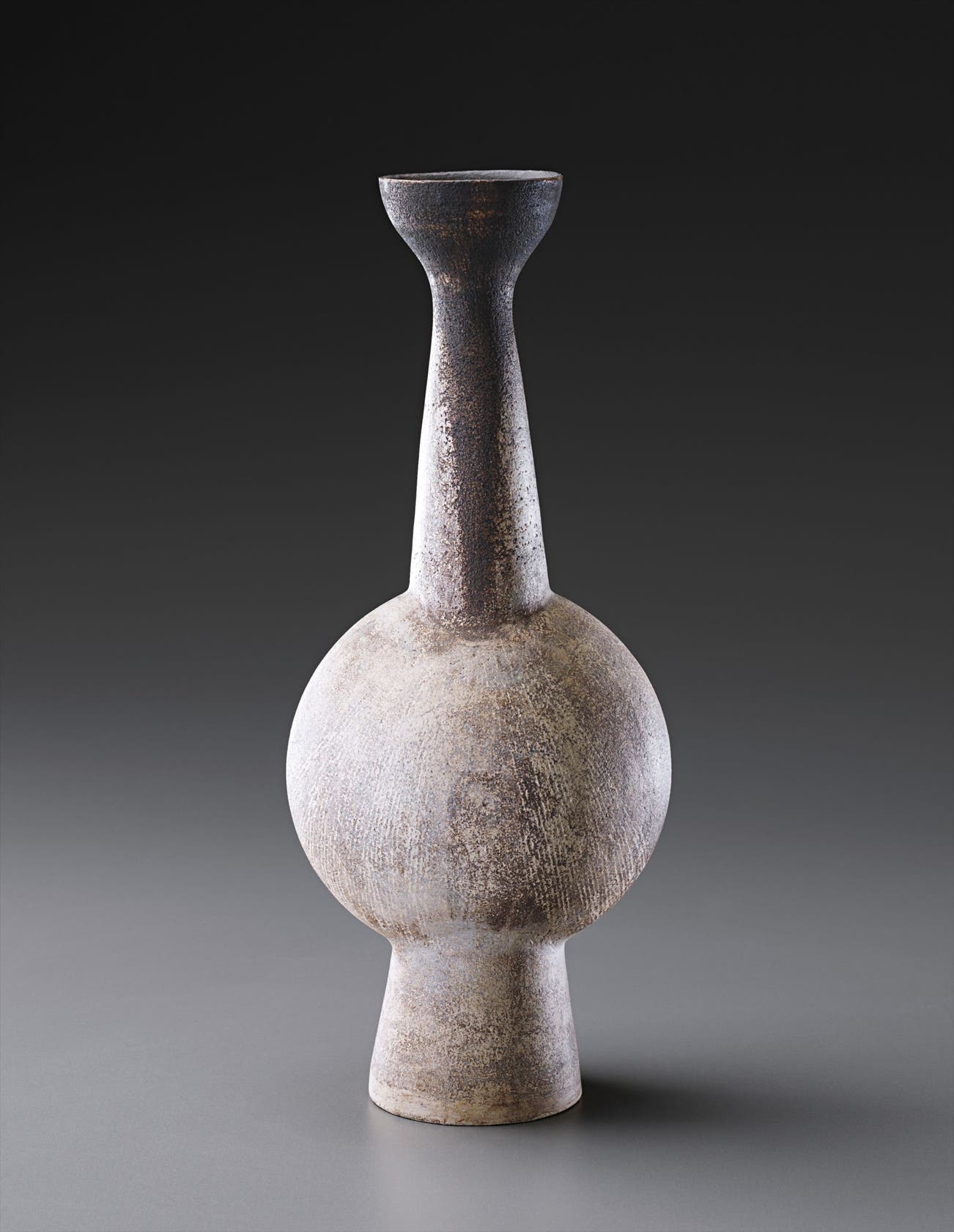In the last phase of his career, Coper reduced the scale of his work creating small "Cycladic" pots that stood on pedestals or drums, recalling the clay figures of Bronze Age Greece.