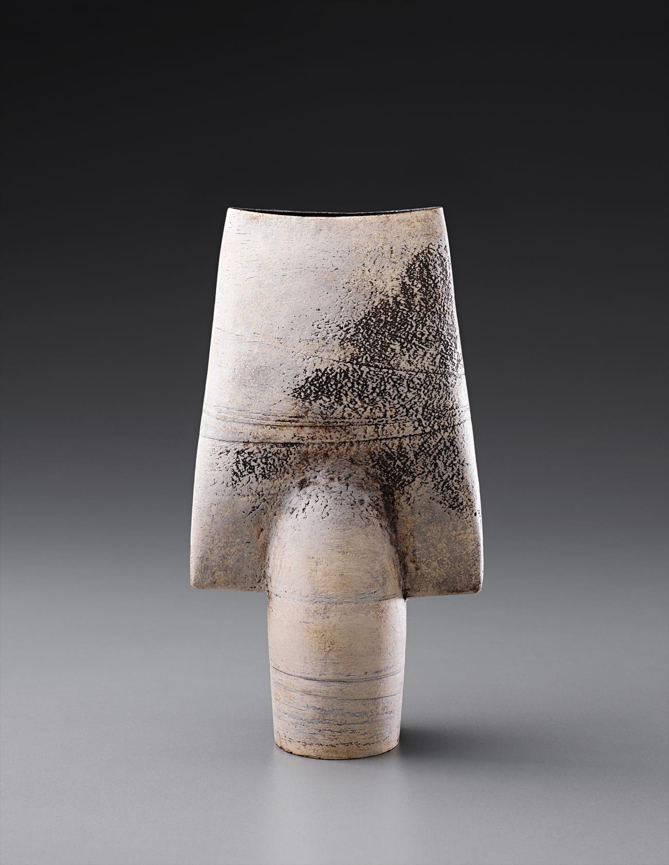 In the last phase of his career, Coper reduced the scale of his work creating small "Cycladic" pots that stood on pedestals or drums, recalling the clay figures of Bronze Age Greece.