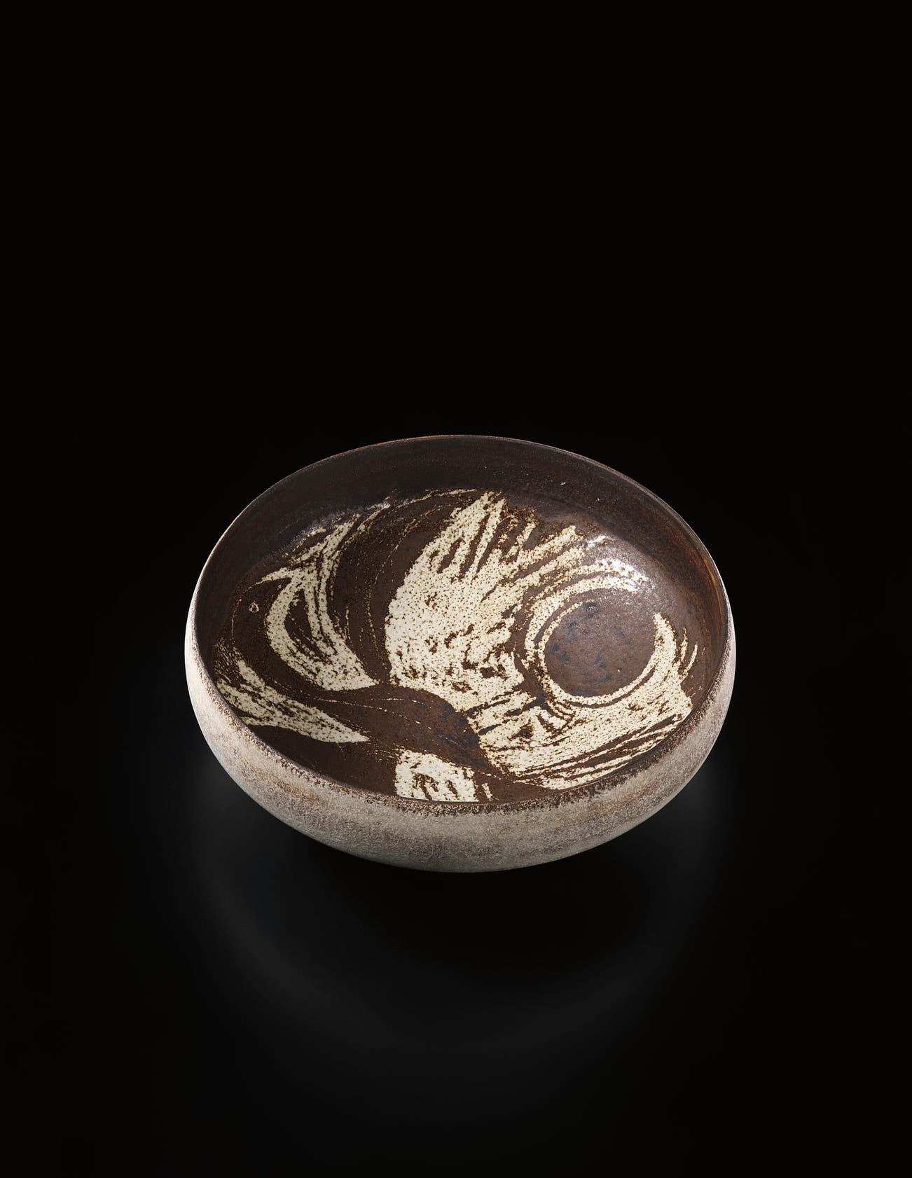 Coper favored compound shapes that, while simple in appearance, were in fact complex in construction. Similar to the making of Joseon Dynasty Moon Jars (Rie in fact displayed a Moon Jar in the studio), he would build his vessels by bringing several thrown forms together, for example joining bowls rim to rim. Coper eschewed glazes and preferred the textured surfaces achieved through the application of white and black slips, evoking the abraded texture of excavated vessels. This interest in ancient objects was very much in step with other modernists of his time—Coper admired Constantin Brancusi and Alberto Giacometti and his textured markings have been compared to sculptors such as William Turnbull.