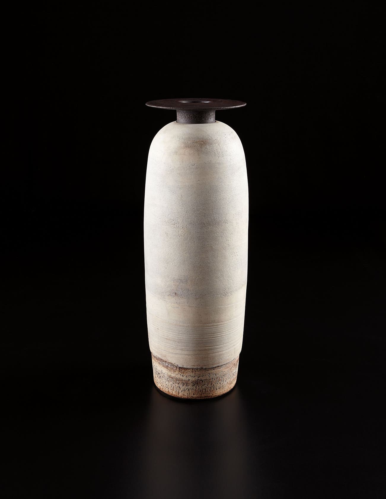 In the last phase of his career, Coper reduced the scale of his work creating small "Cycladic" pots that stood on pedestals or drums, recalling the clay figures of Bronze Age Greece.