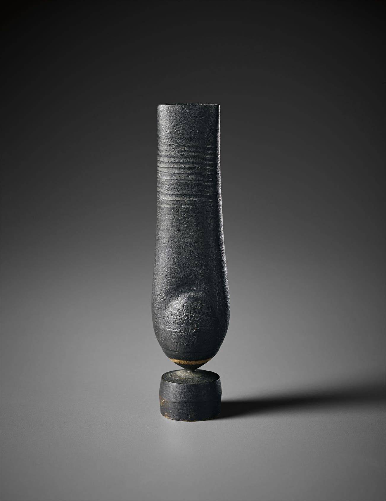 In the last phase of his career, Coper reduced the scale of his work creating small "Cycladic" pots that stood on pedestals or drums, recalling the clay figures of Bronze Age Greece.