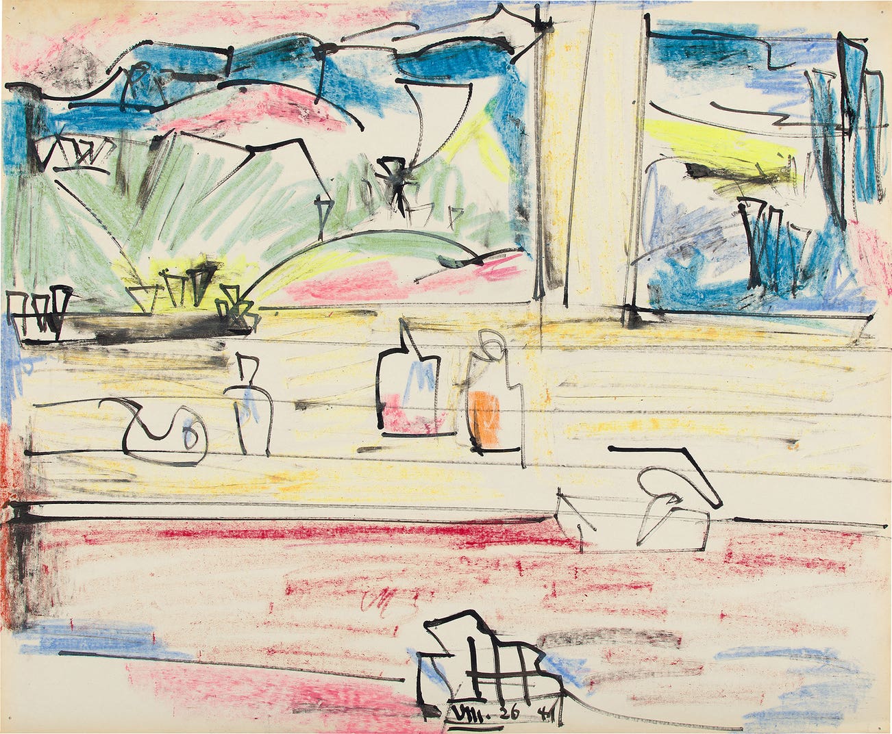 signed with the artist's initials and dated "HH VII. 26 41" lower center; further inscribed and dated "Catalog. No. 783-1941 No. 27" on the reverse; stamped by the Estate of Hans Hofmann and numbered "M0440-48" on the reverse of the backing board