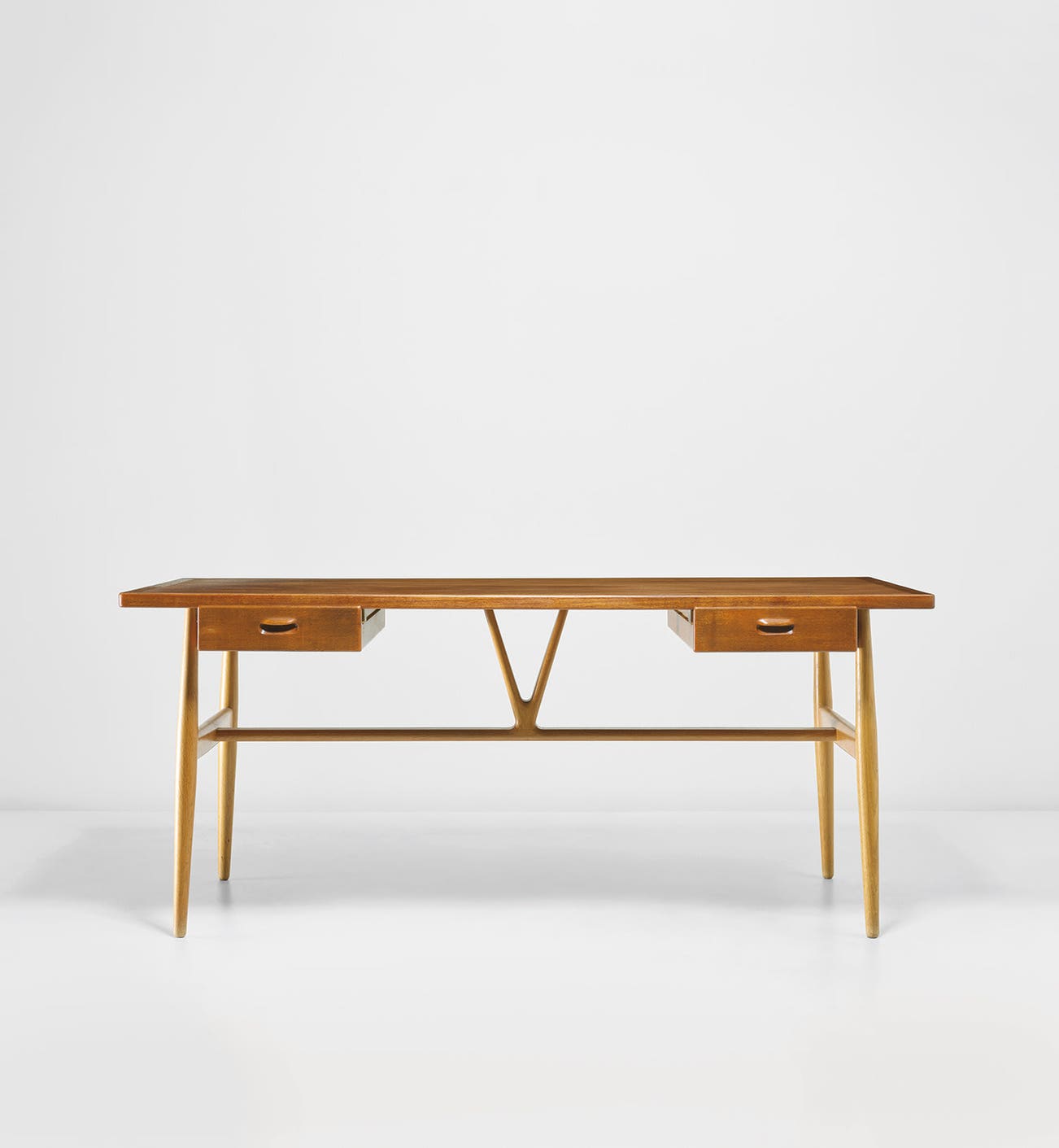 Executed by master cabinetmaker Johannes Hansen, Copenhagen, Denmark. Underside impressed JOHANNES HANSEN/COPENHAGEN/DENMARK and with manufacturer's stamp.