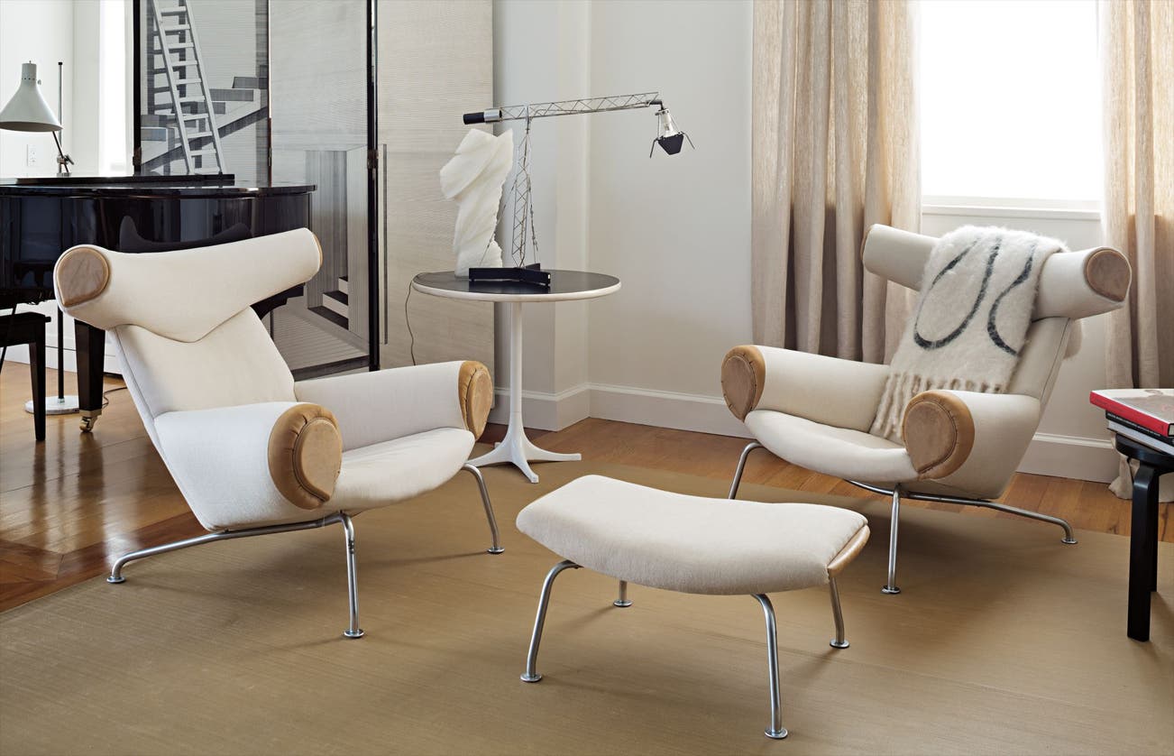 Pair of "Ox" lounge chairs, model no. AP-46, and ottoman, model no. AP-49