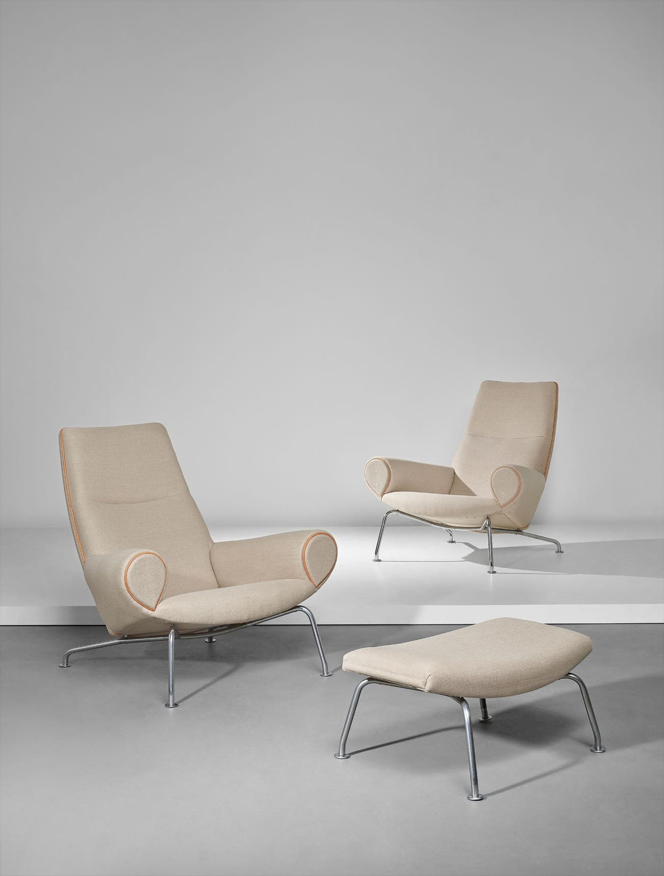Pair of 'Ox' lounge armchairs, model no. AP-47 and stool, model no. AP-49