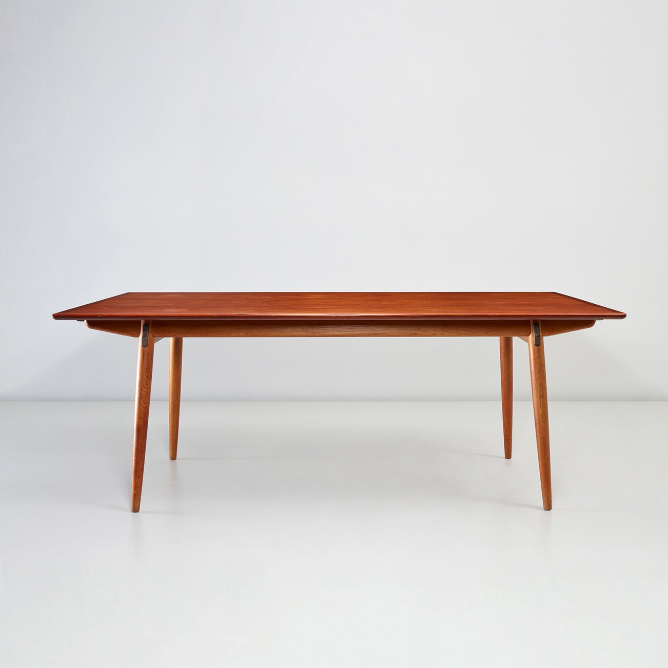 Executed by master cabinetmaker Johannes Hansen, Copenhagen, Denmark. Underside impressed JOHANNES HANSEN/COPENHAGEN/DENMARK and with manufacturer's stamp.